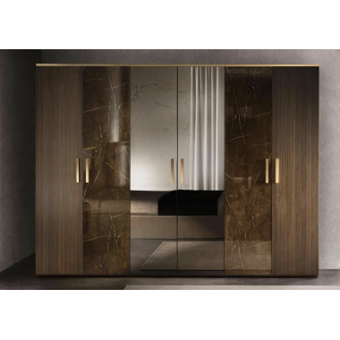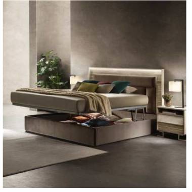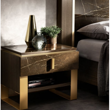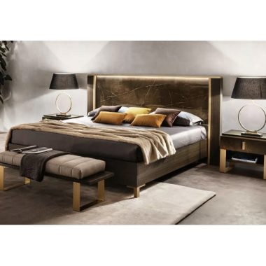 Dzięki meblom Essenza sypialnia staje się intymną i niemal eteryczną przestrzenią wypełnioną marzycielską atmosferą. Wyposażenie spełnia wszystkie kryteria stylu nowoczesnego, zapewniając jednocześnie komfort i funkcjonalność, które są kluczowe w tych pomieszczeniach. Szlachetne zdobienia podkreślają wyraziste linie każdego elementu, tworząc prestiż i harmonię. Również w tym przypadku pozłacany, satynowany metalowy pasek podąża za liniami mebli, upiększając je, zapewniając wszechstronność personalizacji.