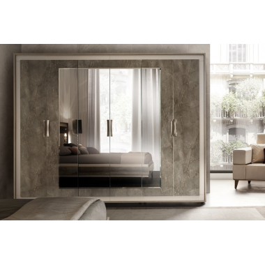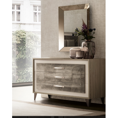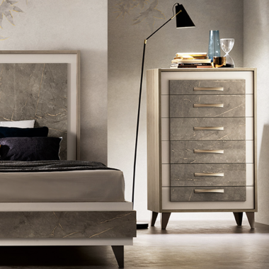 Spokojna i zachęcająca atmosfera to cecha sypialni Ambra. Meble gwarantują komfort i elastyczność bez utraty stylu, ciepło witając Cię w uroczym i przyjemnym pokoju. Tutaj synergia odcieni szarości, bieli i gołębi znajduje pełny wyraz, tworząc delikatny, chromatyczny kontrast , który może sprawić, że całe pomieszczenie będzie przyjemne, a jednocześnie imponujące.