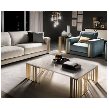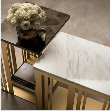 Kolekcję sof i foteli uzupełnia seria okazjonalnych stolików z szlachetnego włoskiego marmuru, które nawiązują do odważnego pikowanego projektu siedzeń i charakteryzują się tym samym prostym designem, który jest całkowicie zgodny ze współczesnymi trendami stylistycznymi.