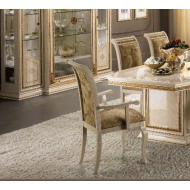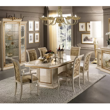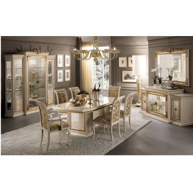 Jadalnia z kolekcji Leonardo uchwyciła złocone refleksy, budząc intensywne emocje. Meble zaprojektowane tak, aby dawać Tobie i Twoim gościom przyjemność spędzania czasu w esencji stylu w połączeniu z kreatywnością i jakością, charakterystyczną dla pracy wyspecjalizowanych rzemieślników. Ta jadalnia została zaprojektowana tak, aby ją podziwiać i zapewniać wszelkie pożądane luksusy.