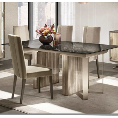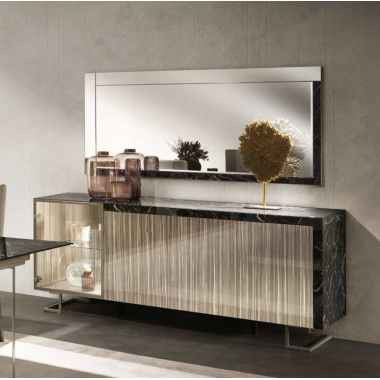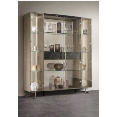 Witrynę w jadalni Luce Dark cechuje modułowość: możesz „zbudować” witrynę według swoich potrzeb i dostępnej przestrzeni, co pozwala na pełną personalizację. Zasadniczo, zaczynając od centralnego modułu dwudrzwiowej witryny, kompozycję można spersonalizować, dodając element jednodrzwiowy po jej prawej lub lewej stronie, aby powiększyć i poszerzyć szafkę.