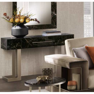 Kontrast pomiędzy tymi dwoma szlachetnymi wykończeniami jest „rozłożony” równomiernie i harmonijnie pomiędzy różnymi meblami w salonie.