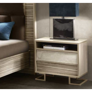 Wiele elementów czyni ją elegancką i nietuzinkową sypialnią, począwszy od oryginalnego materiałowo-chromatycznego kontrastu pomiędzy bielą wykończenia Onyx, a ciepłem wykończenia z drewna Zebrano.