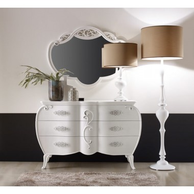 Lustro o bardzo szczególnym kształcie, proponowane w połączeniu z komodą i toaletą Magic Night.