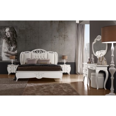 Miękko wyartykułowany w liniach harmonijnie splecionych w górnej części, dostępny jest również w lakierowanym kolorze kości słoniowej ze złotymi detalami.