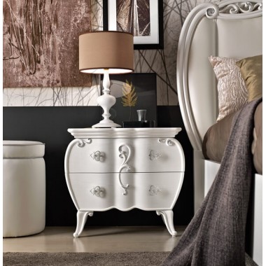 Stolik nocny z komponentem lakierowanym na biało, z 2 szufladami, których prowadnice są wyposażone w system bluemotion.