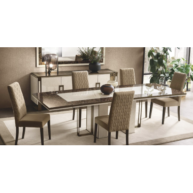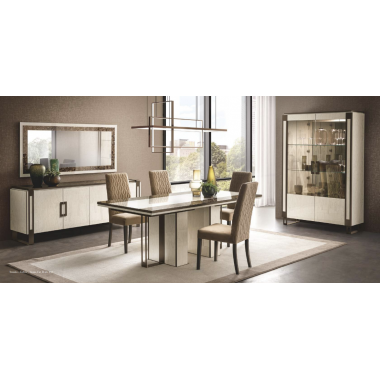 Współczesna jadalnia Poesia wywołuje wyrafinowaną atmosferę i przekazuje przyjemne poczucie harmonii, porządku i symetrii kompozycyjnej. Eleganckie, współczesne meble, wyrafinowane estetycznie, a także funkcjonalne w racjonalności swoich form oraz w obecności powtarzających się detali i dekoracji w całej kolekcji.