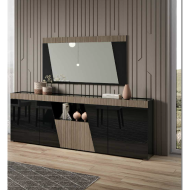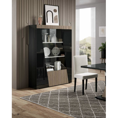 Włoska kolekcja do salonu ETNA BLACK sprawi, że Twoje wnętrze stanie się luksusowe. Korpusy oraz fronty mebli utrzymane są w naturalnej kolorystyce czerni i brązu z wykończeniem lakierowanym na wysoki połysk. Cechą charakterystyczna kolekcji ETNA jest połączenie lakierowanej płyty na wysoki połysk z lamelami w kolorze naturalnego drewna. Takie zestawienie sprawia, iż cała kolekcja daje wrażenie luksusowej poprzez swoja naturalność.
