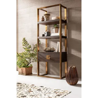 Nasza duża półka wykonana z lakierowanego forniru drewnianego i stali malowanej proszkowo to idealny dodatek do każdego nowoczesnego stylu życia. Jej wyrafinowany, atrakcyjny design pozwala na optymalne wykorzystanie w różnych pomieszczeniach – od salonu po domowe biuro. Dzięki dużej przestrzeni do przechowywania i efektownemu wzornictwu, ta designerska półka jest nie tylko przyciągająca wzrok, ale także niezwykle funkcjonalna. Oferuje idealną możliwość stylowego wyeksponowania przedmiotów osobistych, dekoracji i książek oraz utrzymania porządku.