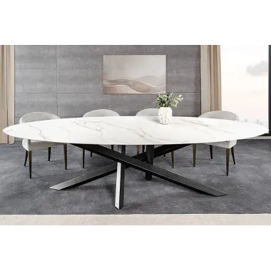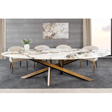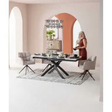 Idealny do mniejszych jadalni, zapewnia komfortowe miejsce dla 4 osób. Blat o średnicy 120 cm wykonany z wysokiej jakości ceramiki, dostępny w różnych kolorach i wzorach. Cena: 2 499 zł.