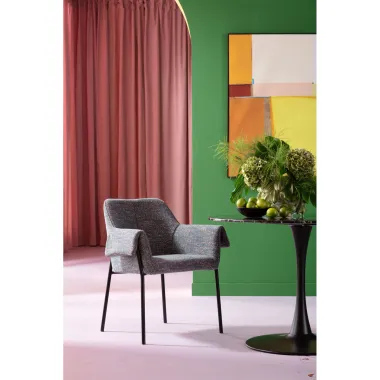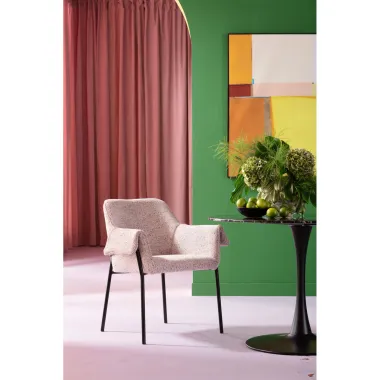 Urządzasz nowoczesny salon? Wybierz krzesła na cienkich metalowych nogach z modną tkaniną typu boucle.