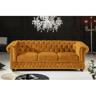 Sofa CHESTERFIELD 3 osobowa musztardowo żółty aksamit 205cm / 47032
