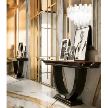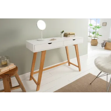 Wyjątkowe designerskie konsole z drewna, metalu lub szkła w sklepie internetowym Home Inspiration. Ekstrawaganckie designerskie konsole do korytarzy, biur i salonów Konsola Home Inspiration to designerski mebel, który idealnie nadaje się do wielu celów. Stylowa toaletka, elegancka sekretarka czy ekstrawagancki stolik pomocniczy: w naszym sklepie internetowym znajdziesz duży wybór stolików konsolowych, które dodadzą Twojemu wnętrzu jeszcze więcej uroku. Materiały, z których produkujemy nasze stoły konsolowe, są tak różnorodne, jak możliwe są zastosowania. U nas znajdziesz stoły wykonane z metalu, masywne stoły konsolowe wykonane z drewna, stoły konsolowe z frontami ze szkła lustrzanego i wiele innych! Dzięki ich konstrukcji można wspaniale wykorzystać wąskie stoliki konsolowe w każdym salonie, niezależnie od jego wielkości, aby zapewnić więcej miejsca do przechowywania. Jeden stół konsolowy, wiele opcji - stylowe meble na indywidualne wymagania Od nowoczesnych po rustykalne, znajdziesz tutaj wszystkie style połączone. Oczywiście w naszej ofercie mamy również duży wybór pasujących mebli i akcesoriów mieszkaniowych do wszystkich designerskich konsoli. Dzięki temu możesz idealnie dopasować styl swojego nowego stołu konsolowego i stworzyć szczególnie harmonijną koncepcję mieszkania. Połącz stół na przykład z pasującym kredensem, połóż go na dywanie o tym samym wzorze lub postaw w świetle reflektorów za pomocą lampy stołowej. Dzięki kompaktowym rozmiarom konsol można je wspaniale ustawić również w mniejszych pomieszczeniach - na przykład w przedpokoju obok szatni lub jako dodatkowa półka w salonie, aby mieć jeszcze więcej miejsca na stoliku kawowym.