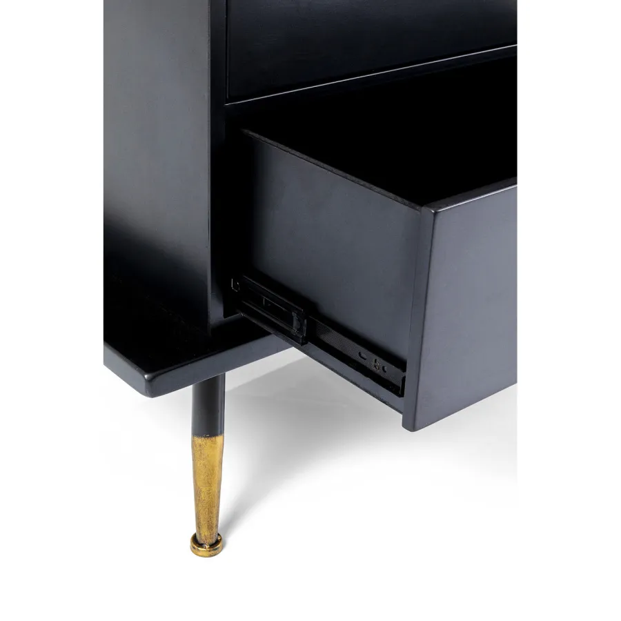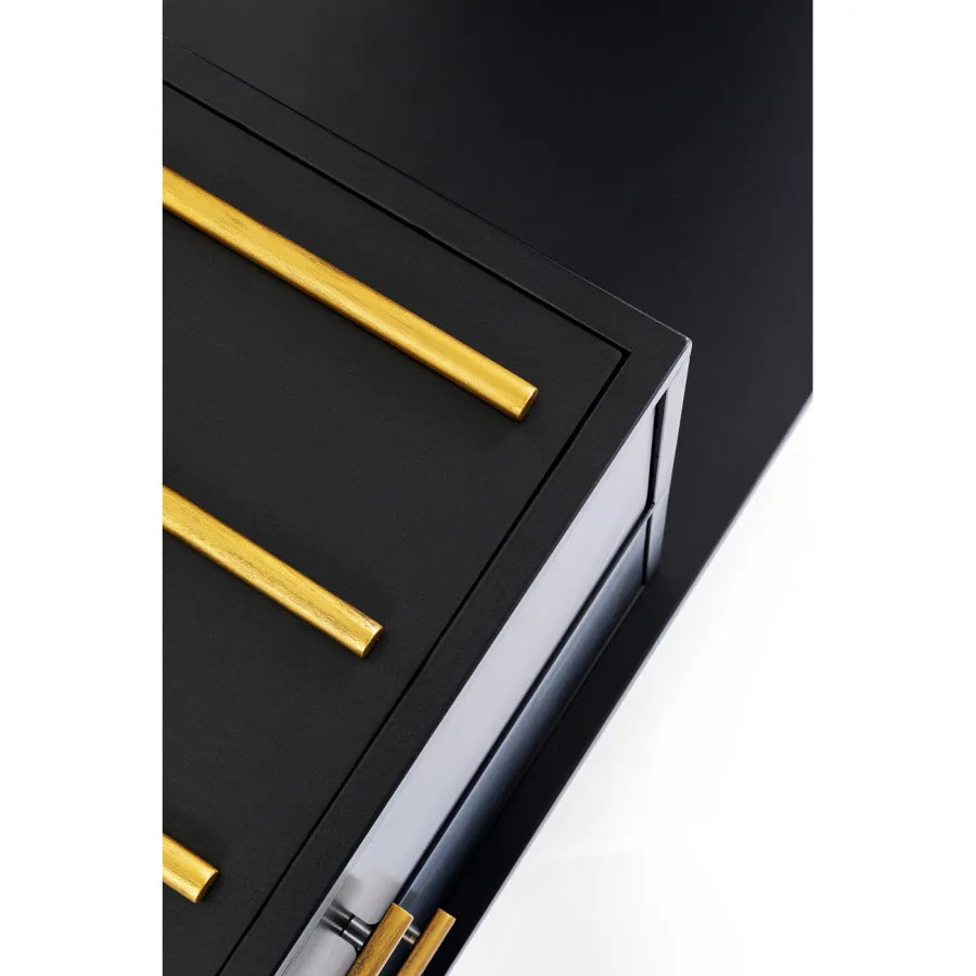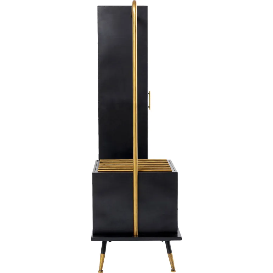Jak funkcjonalność i klasa idą w parze? Odpowiedź brzmi: znakomicie! Szafa La Gomera w eleganckiej czerni i złocie to uczta dla oczu. To, czego nie widać, to akcesoria, które znikają w szufladach, ale wszystko, czym chcesz się pochwalić, znajdzie miejsce na drążku na ubrania lub zostanie dyskretnie wyeksponowane za ryflowanymi szklanymi drzwiczkami. Szafa ta nada Twojemu przedpokojowi klimat loftu, który już od wejścia przekona gości o Twoim doskonałym guście