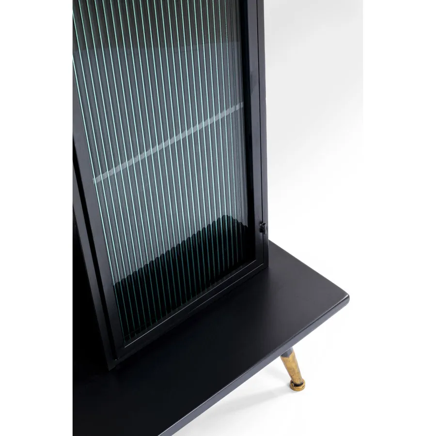 Rama: stal lakierowana, korpus: płyta pilśniowa średniej gęstości (MDF) lakierowana, stopka/podstawa: stal lakierowana, drzwi: szkło hartowane bezpieczne szkło przezroczyste, uchwyt: stal lakierowana, półka: zamontowana na stałe