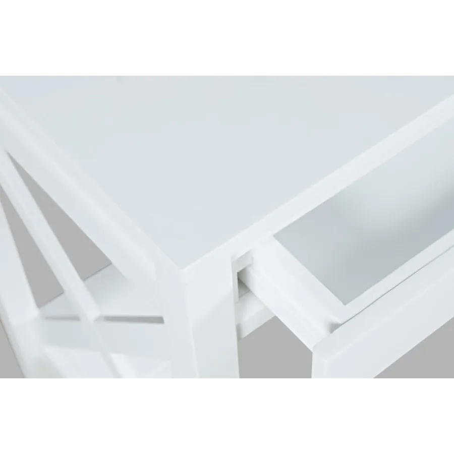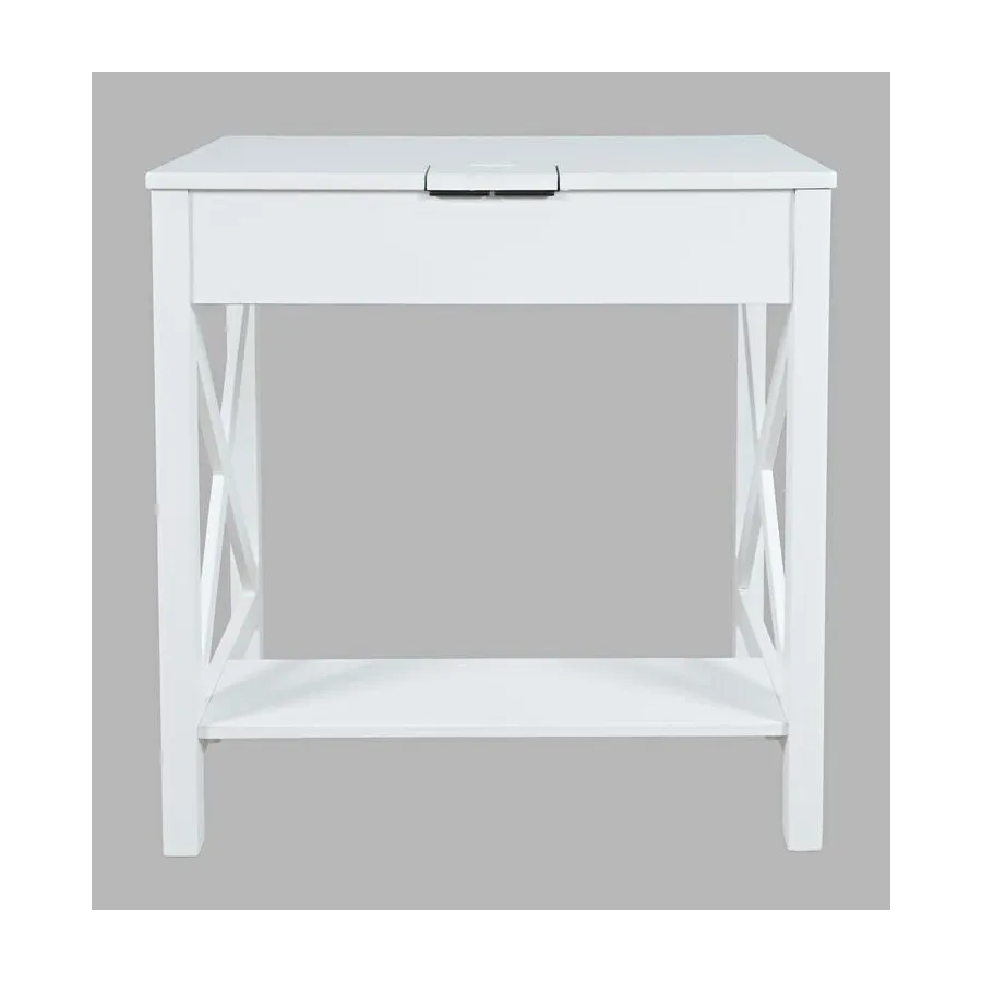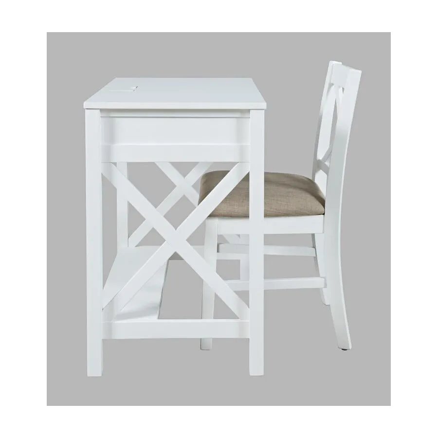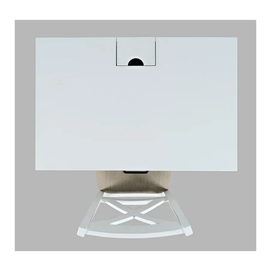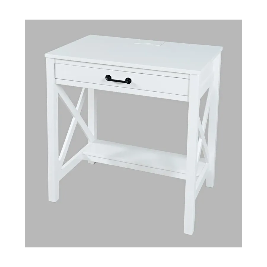 Klasyczne, białe biurko o kompaktowych wymiarach. Produkt posiada funkcjonalną szufladę, wbudowane w blat gniazdo i porty usb oraz praktyczny podnóżek zapewniający ergonomię pracy. Doskonały mebel do zagospodarowania niewielkich przestrzeni.