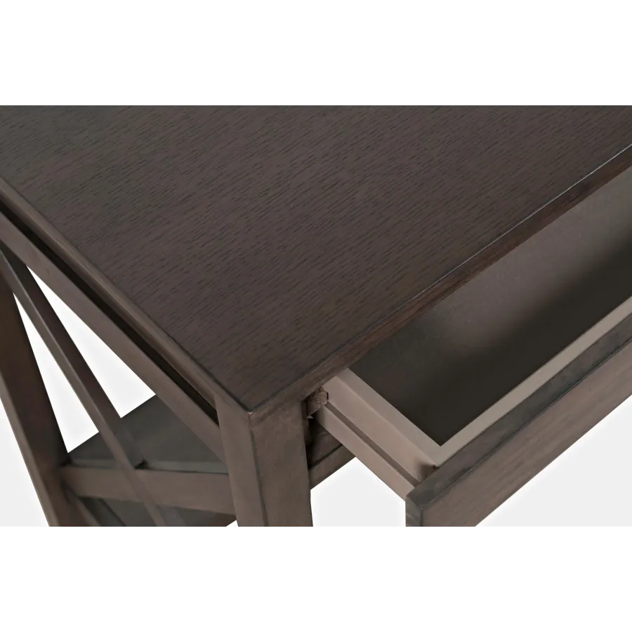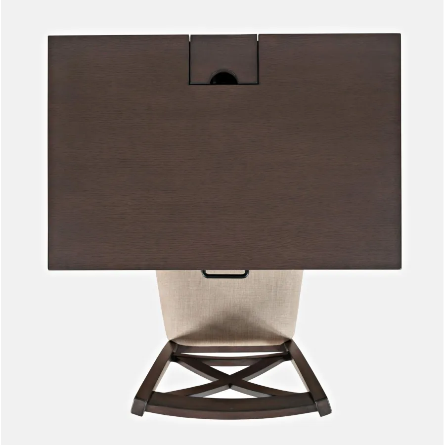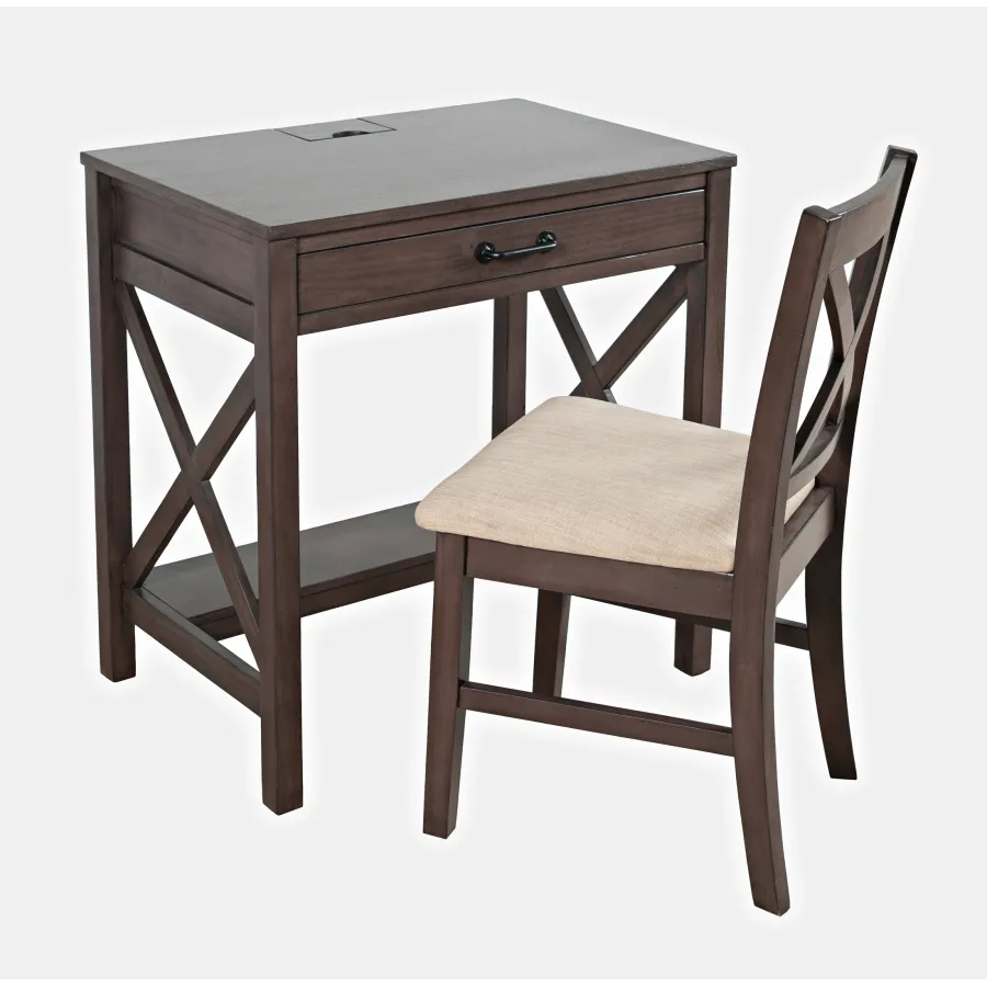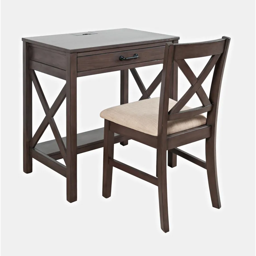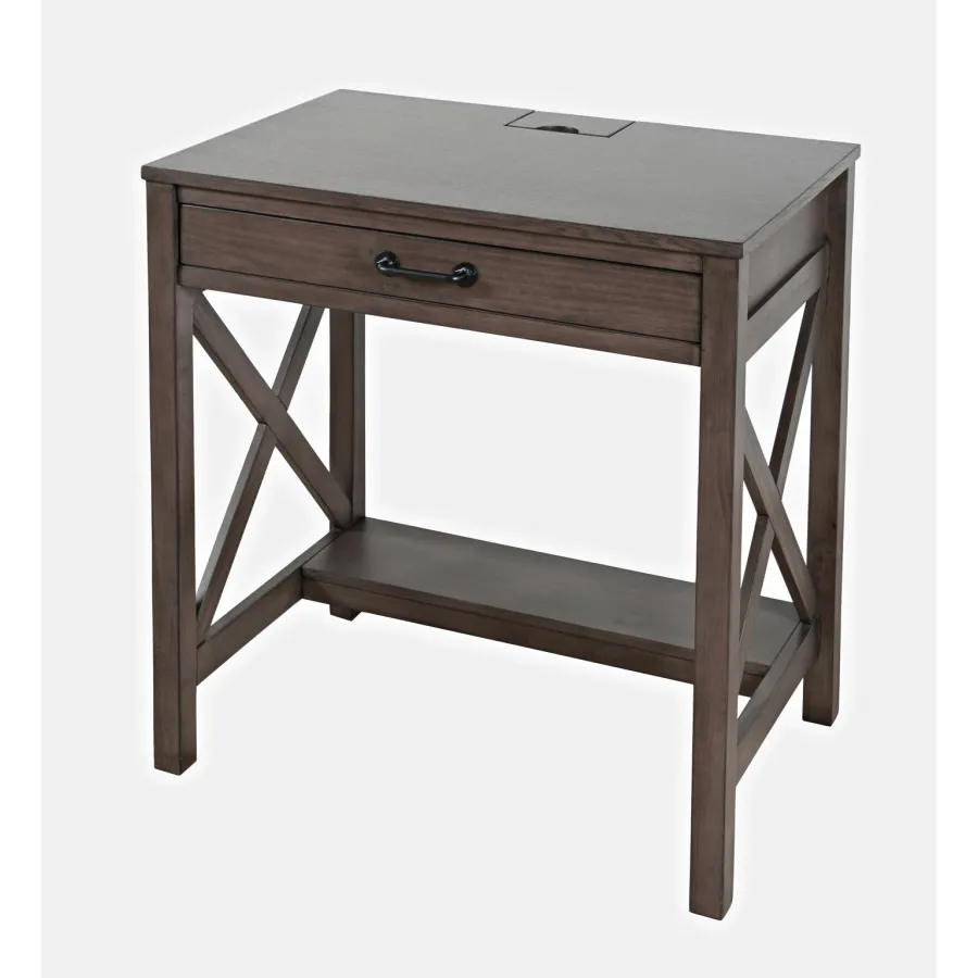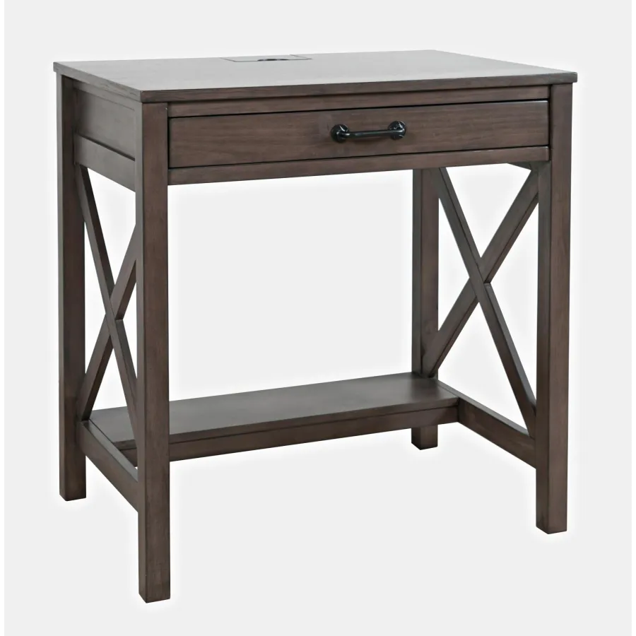 Klasyczne, brązowe biurko o kompaktowych wymiarach. Produkt posiada funkcjonalną szufladę, wbudowane w blat gniazdo i porty usb oraz praktyczny podnóżek zapewniający ergonomię pracy. Doskonały mebel do zagospodarowania niewielkich przestrzeni.