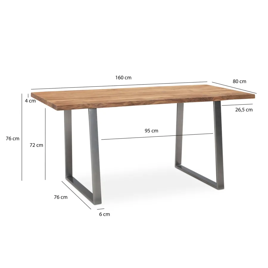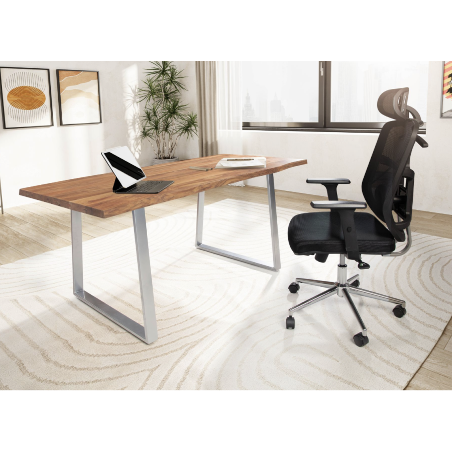 Wohnling Biurko drewniane MAMMUT akacja srebrne nóżki 160 x 76 x 80m / WL7.268
