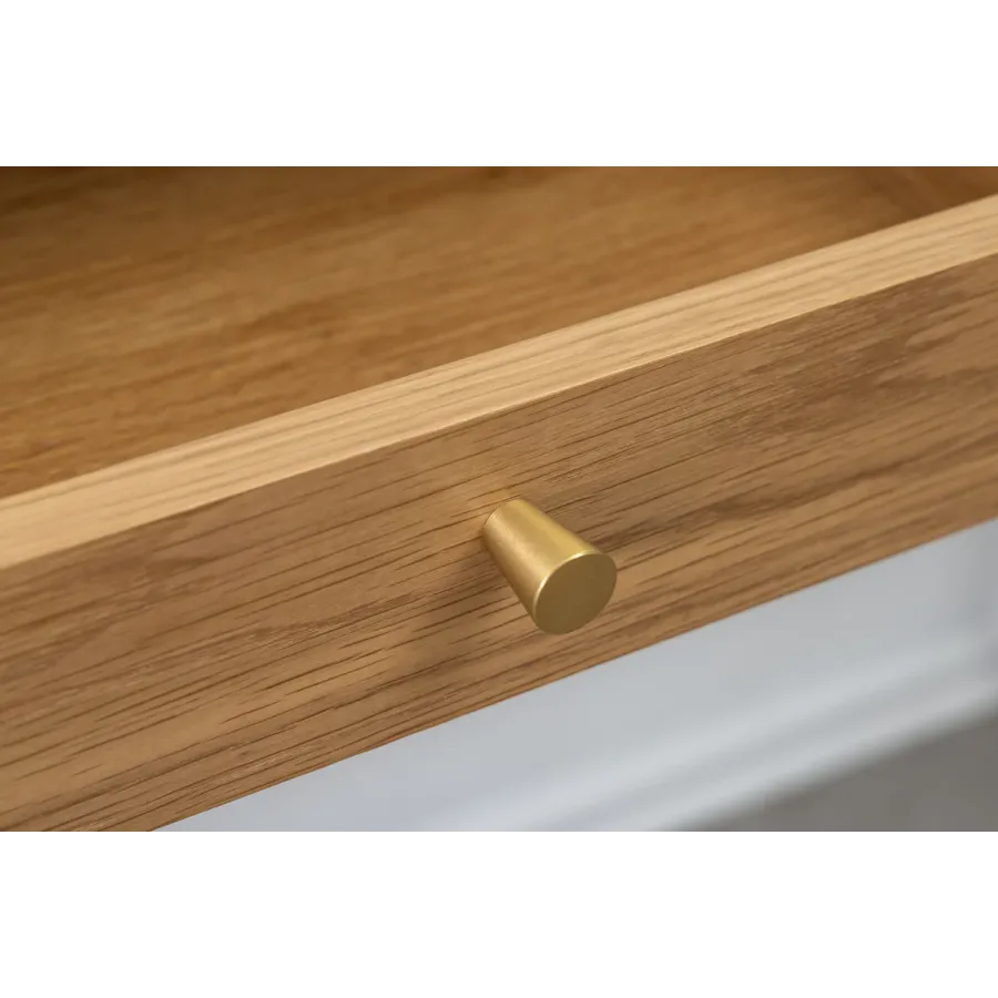 Szerokość 120 cm zapewnia wystarczająco dużo miejsca na laptop, monitor i akcesoria biurowe – idealnie sprawdzi się w domowym gabinecie lub przestrzeni kreatywnej. Zintegrowana szuflada umożliwia estetyczne przechowywanie drobiazgów, dbając o porządek na blacie. Prawdziwy fornir dębowy nadaje biurku naturalny wygląd, przyjemną w dotyku fakturę oraz trwałość na lata.Dzięki regulowanym stopkom biurko stabilnie stoi nawet na nierównych powierzchniach. ATELIER to mebel, który doskonale łączy design, jakość i funkcjonalność – sprawdzi się nie tylko jako biurko do pracy, ale także jako stylowa konsola w przedpokoju.