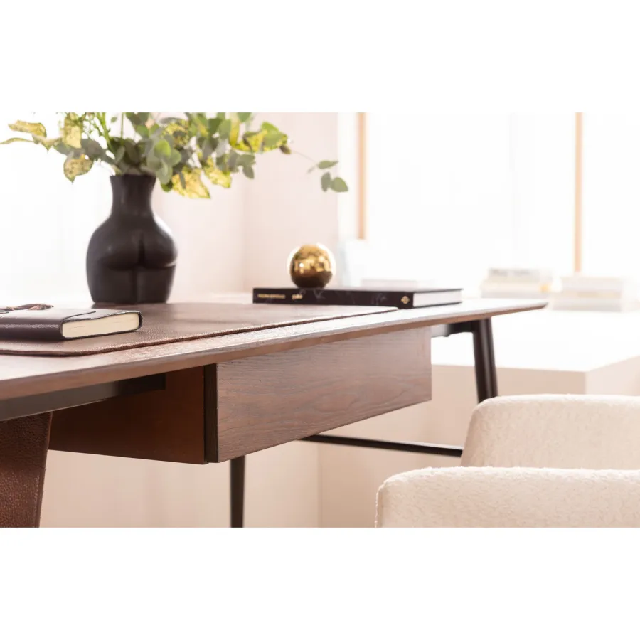 Chcesz wyrzeźbić dobrą sylwetkę w biurze, a nawet w domowym biurze? Nasze biurko Boticelli zrobi to za Ciebie. Prosty, a zarazem charakterystyczny design sprawia, że praca staje się o wiele przyjemniejsza. Skórzana półka jest wygodna dla ramion i chroni powierzchnię biurka. Szuflada stanowi idealne miejsce do przechowywania ważnych dokumentów, których nie należy zostawiać otwartych na stole. Biurko stanowi idealne połączenie funkcjonalności i designu i będzie stylową ozdobą Twojego gabinetu. Po prostu wyjątkowy