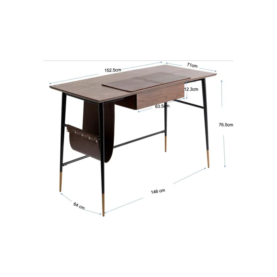 Rama: stal lakierowana, skóra bydlęca pokryta skórą, Blat: płyta pilśniowa średniej gęstości (MDF) lakierowana, szuflada: płyta pilśniowa średniej gęstości (MDF) lakierowana, Rama szuflady: płyta pilśniowa średniej gęstości (MDF) fornirowana, grubość panelu 19 mm