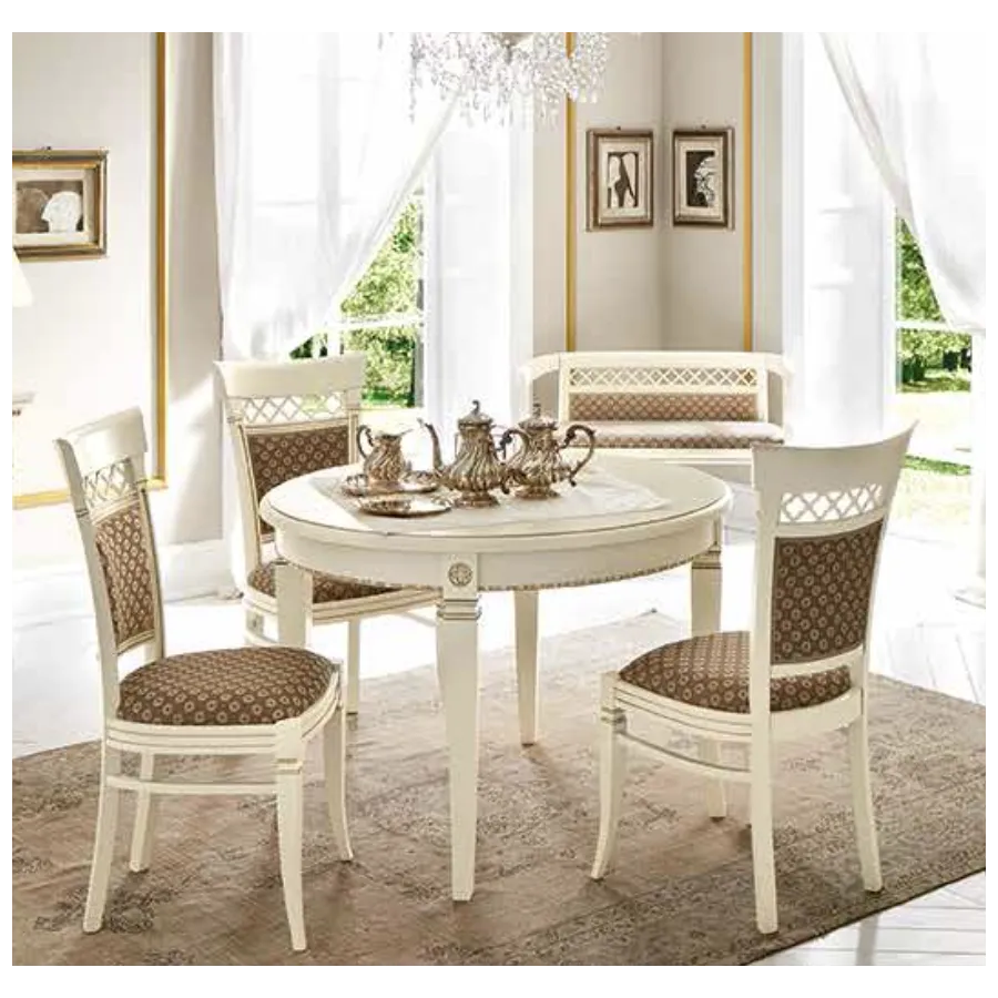 Doskonała wszechstronność elementów z kolekcji Palazzo Ducale ECRU stanowi wyjątkowy dodatek Twojego wnętrza. Wyrafinowana dbałość o drobne szczegóły oraz miękkie i zaokrąglone linie bogate w silną rzemieślniczą osobowość to cechy charakterystyczne tej kolekcji. Elegancja i liniowość, główne cechy rozkładanego okrągłego stołu. Wygoda i wszechstronność pod klasycznym płaszczykiem, upiększonym esencją koloru. Dbałość o szczegóły łączy się z wszechstronnością nadając kształt praktyczności dla współczesnego życia.