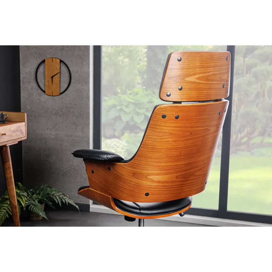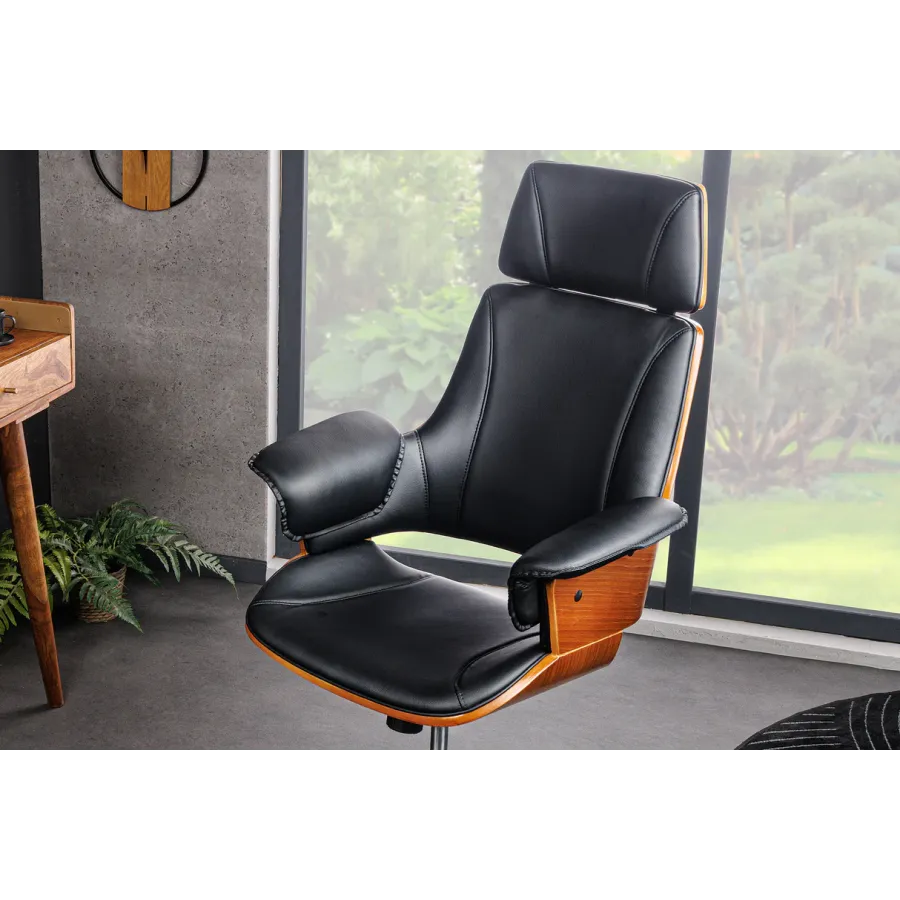 Invicta Fotel biurowy MANHATTAN czarny obrotowy imitacja skóry orzech 68cm / 44195