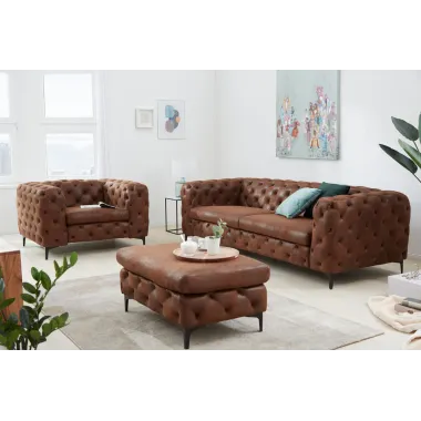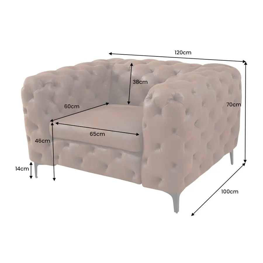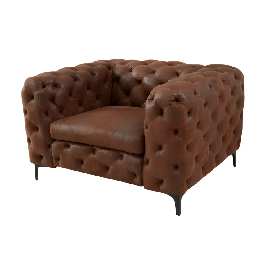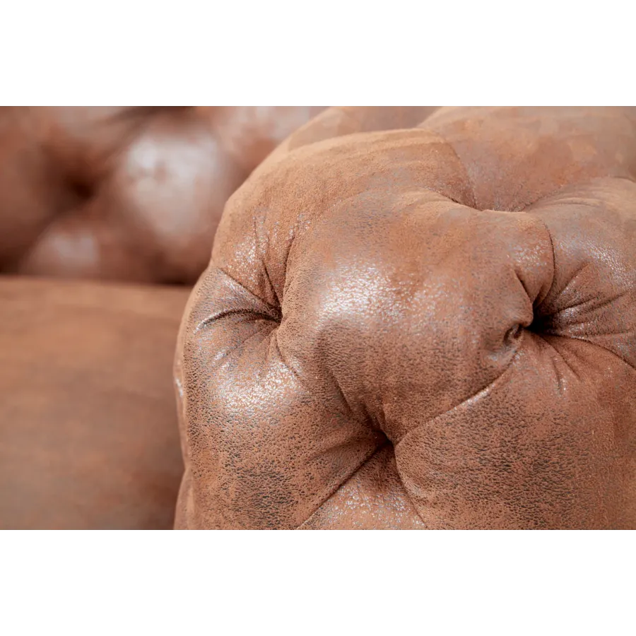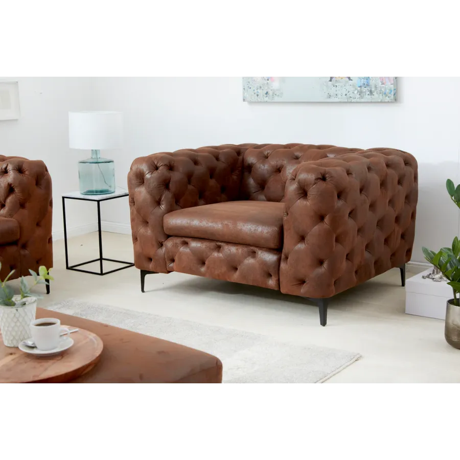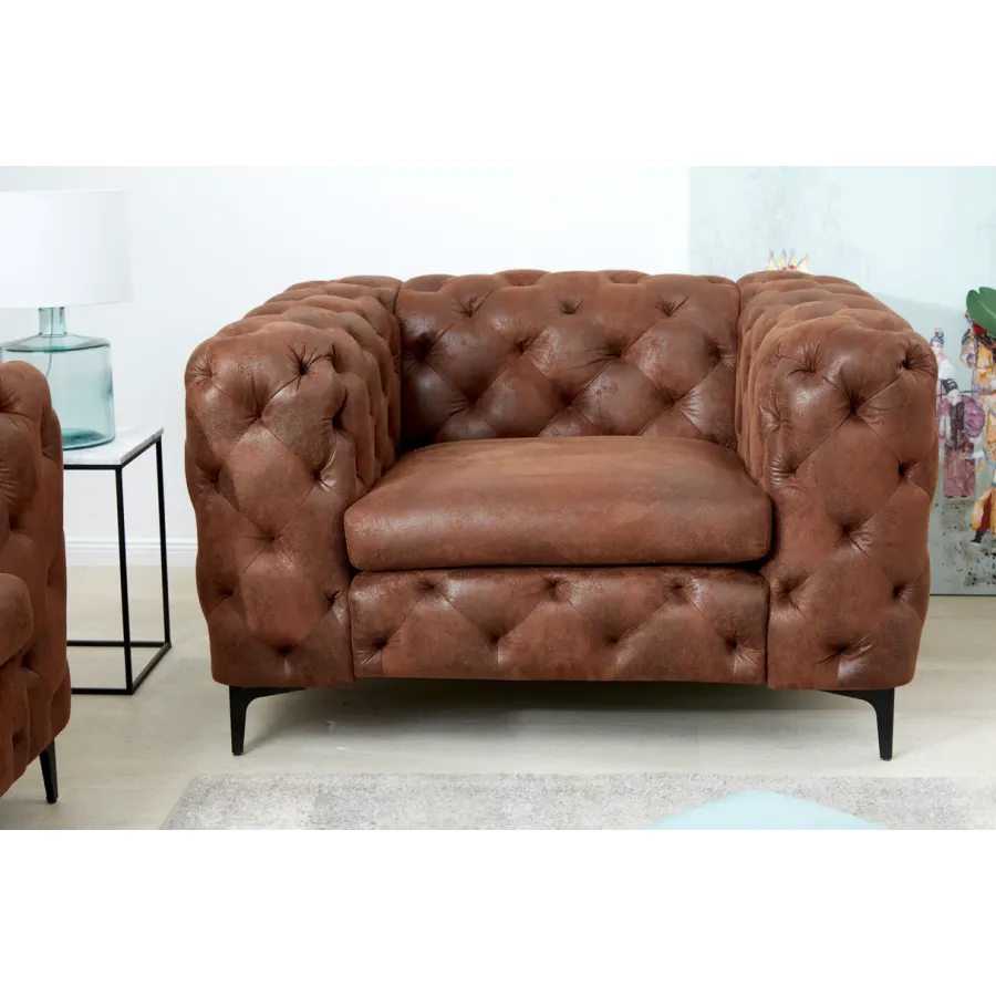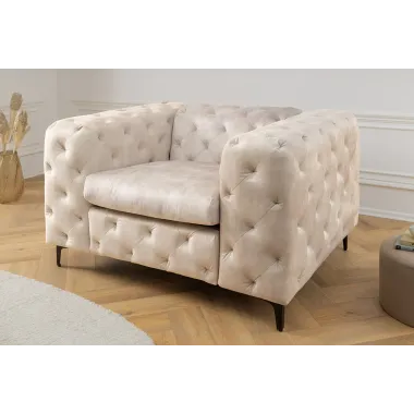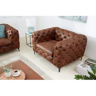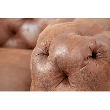 Fotel jest tapicerowany również na plecach z ozdobnym pikowaniem w stylu Chesterfield