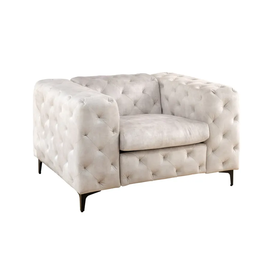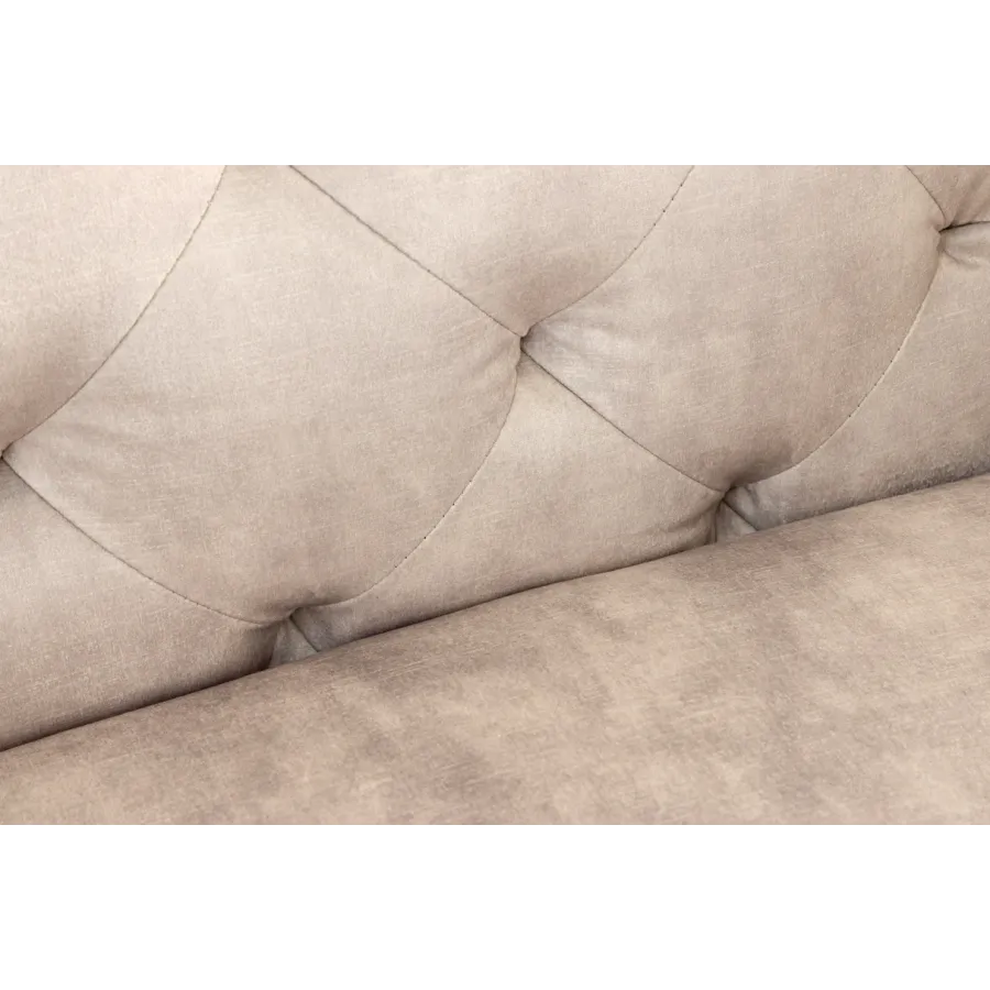 Fotel jest tapicerowany również na plecach z ozdobnym pikowaniem w stylu Chesterfield