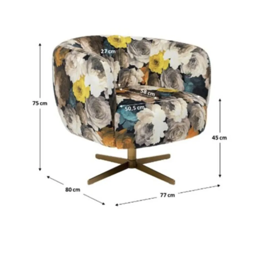 Kare FOTEL obrotowe PEONY PEACOCK 81 x 70 x 75cm / 71057