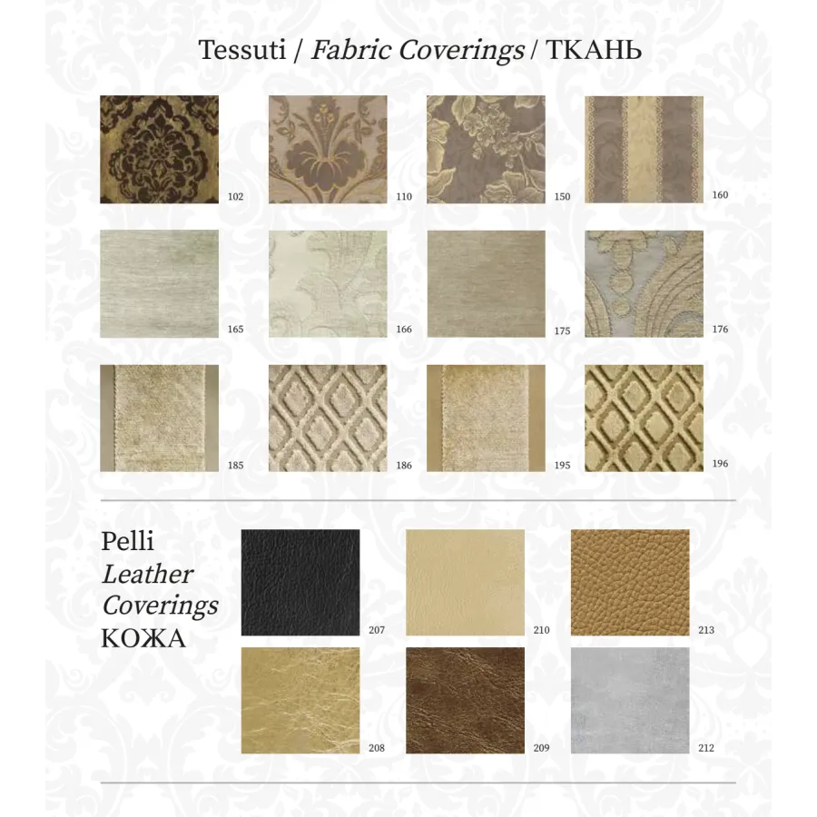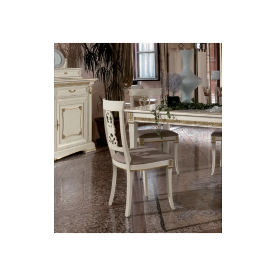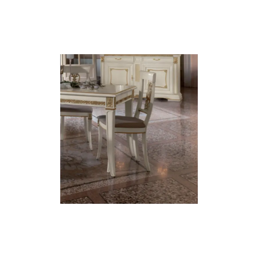 Wnętrze zaaranżowane meblami z tej kolekcji to jasna, harmonijna przestrzeń, w której dominuje mlecznobiała kolorystyka oraz złote liście subtelnie zdobiące rzeźbione dekoracje. Każdy detal, każda linia została zaprojektowana z największą starannością przez najlepszych włoskich architektów i projektantów, a możliwość wykonania mebli na zamówienie pozwala sprostać nawet najbardziej wyszukanym oczekiwaniom.