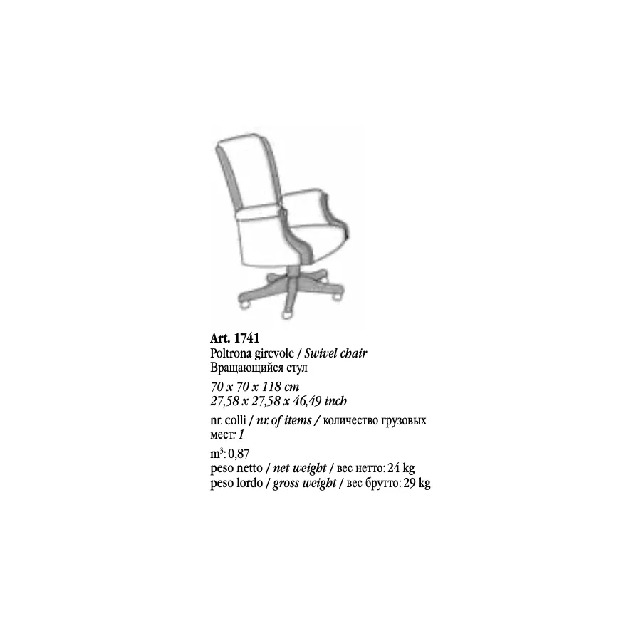 VIVALDI CREMA Włoski Fotel biurowy obrotowy 70 x 118 x 70cm / 1741