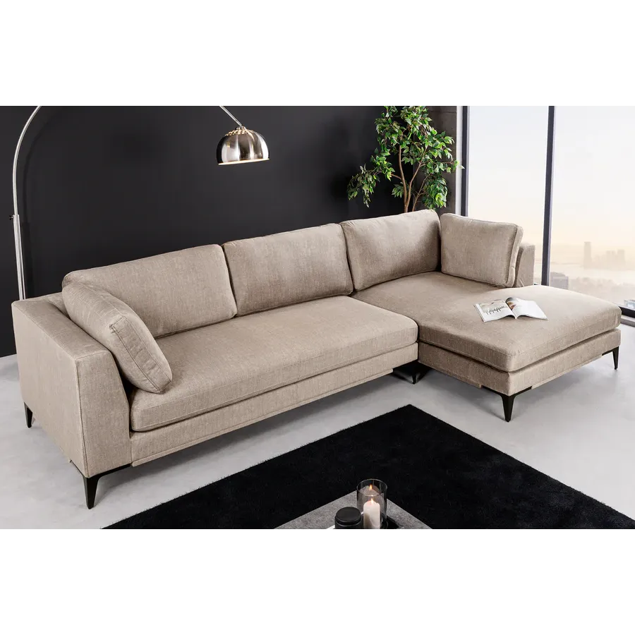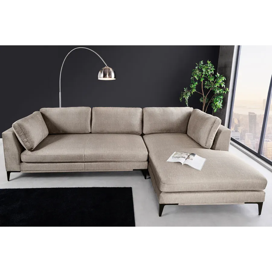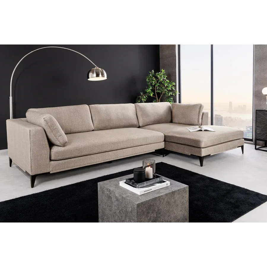 Invicta SIGNUM Kanapa narożna 3-osobowa z pufą prawa aksamit taupe 313 x 110 x 103cm / 44538