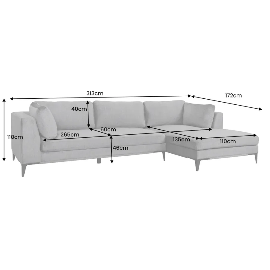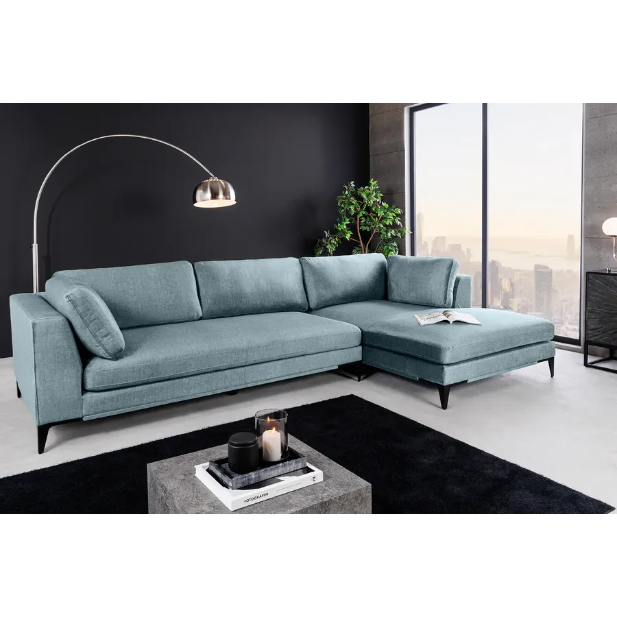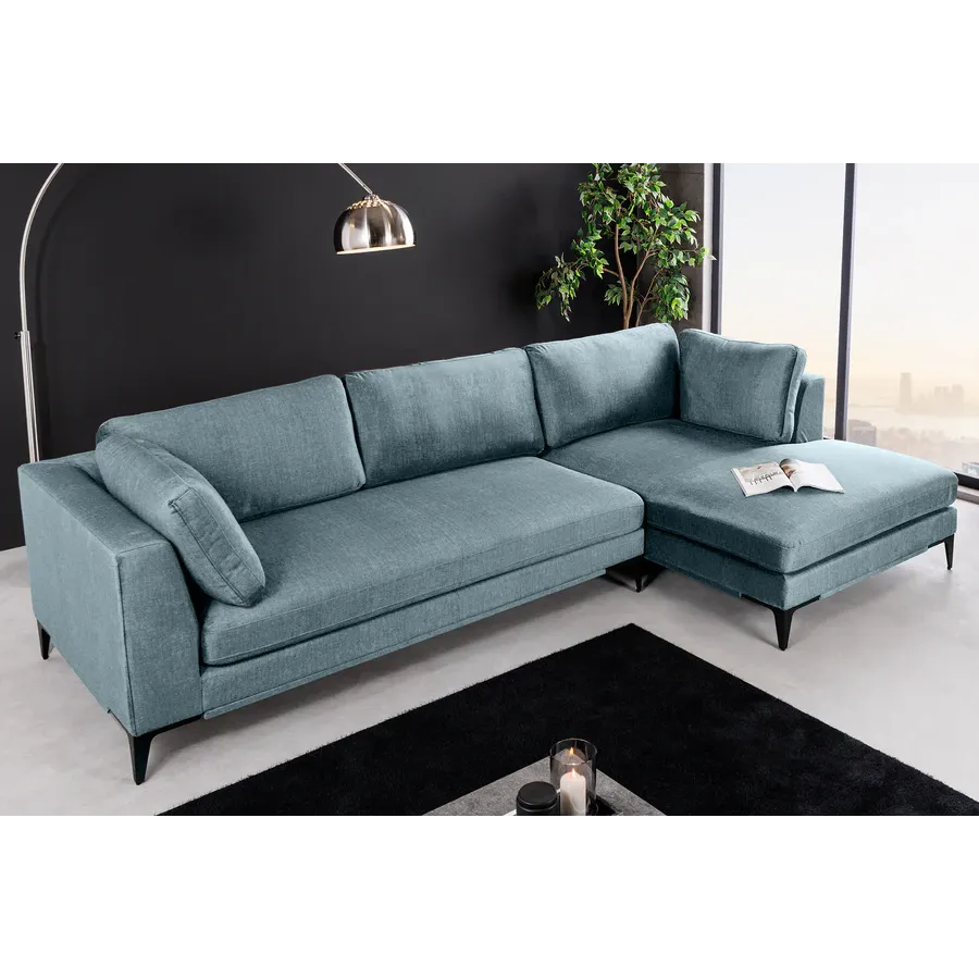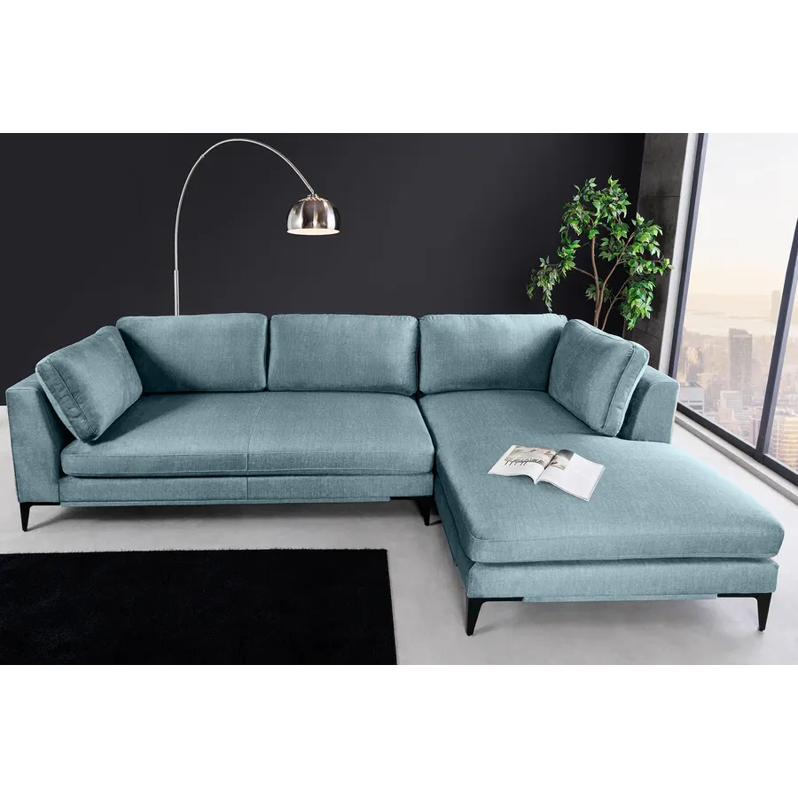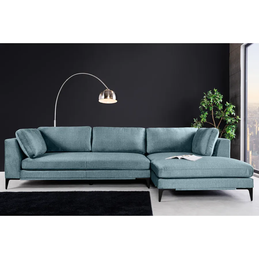 Invicta SIGNUM Kanapa narożna 3-osobowa z pufą prawa aksamit turkus 313 x 110 x 103cm / 44535