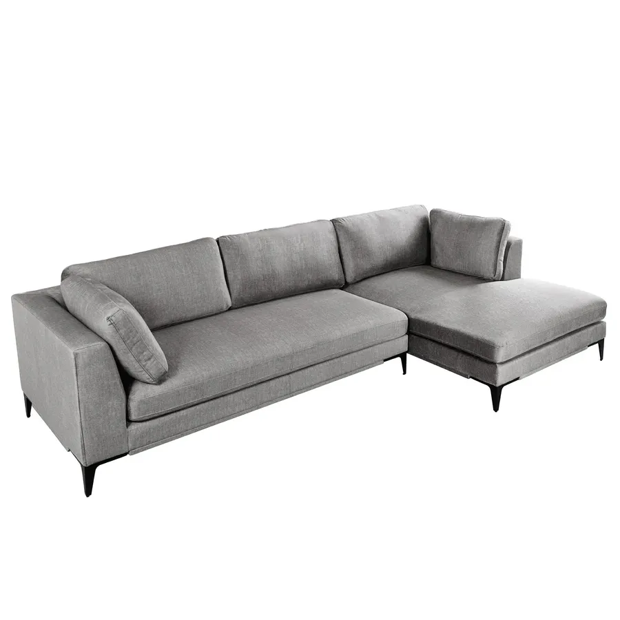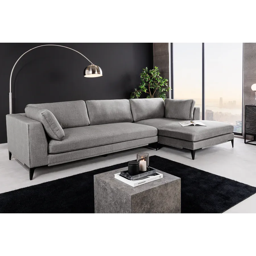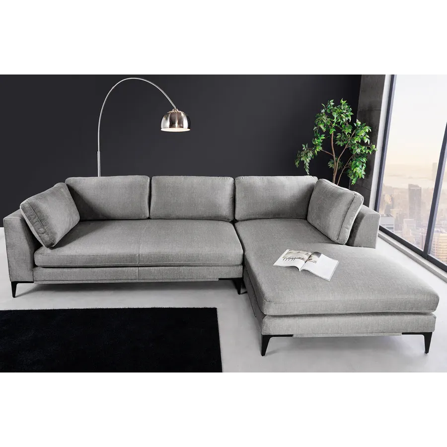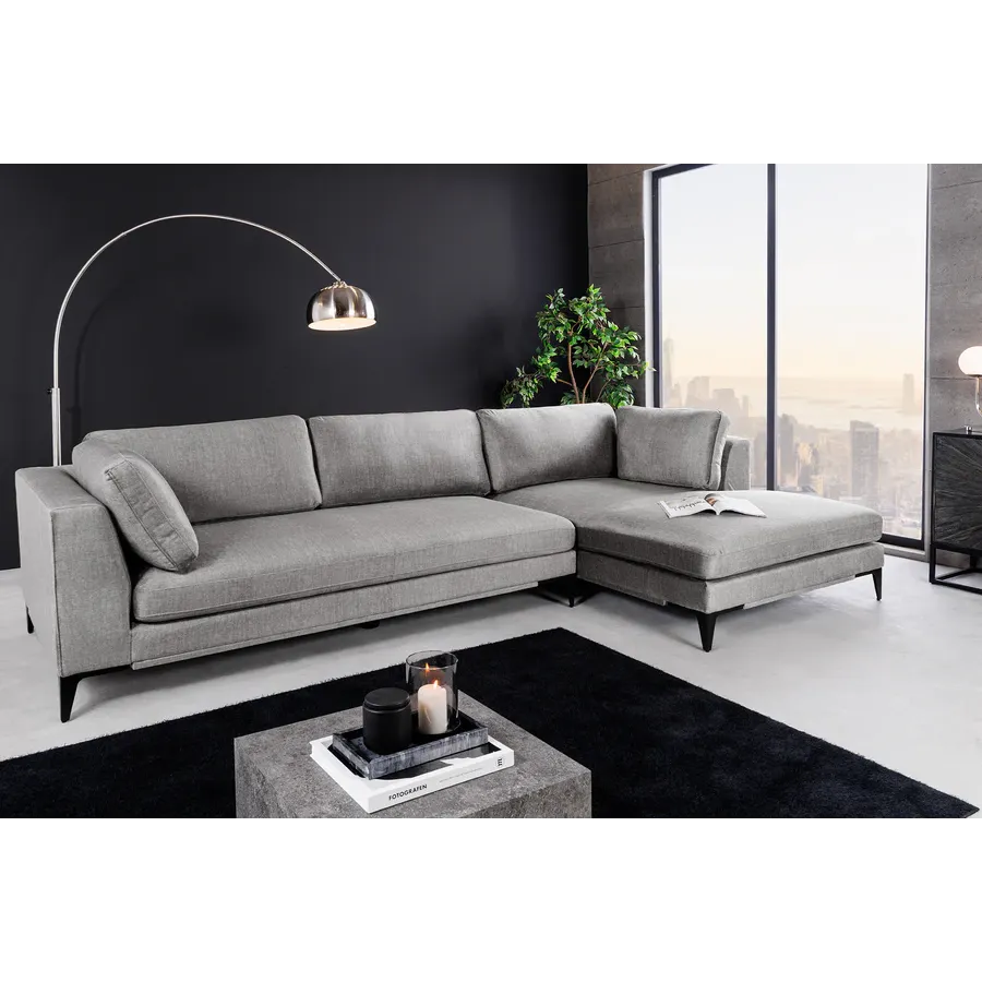 Invicta SIGNUM Kanapa narożna 3-osobowa z pufą prawa aksamit szary 313 x 110 x 103cm / 44449