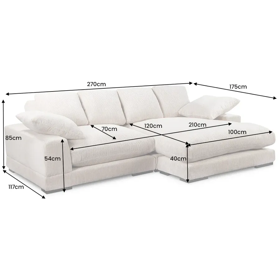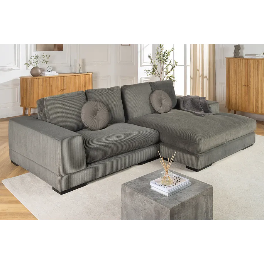 Invicta Sofa narożna BABYLON XXL sztruks szary 270 x 85 x 175cm / 43858