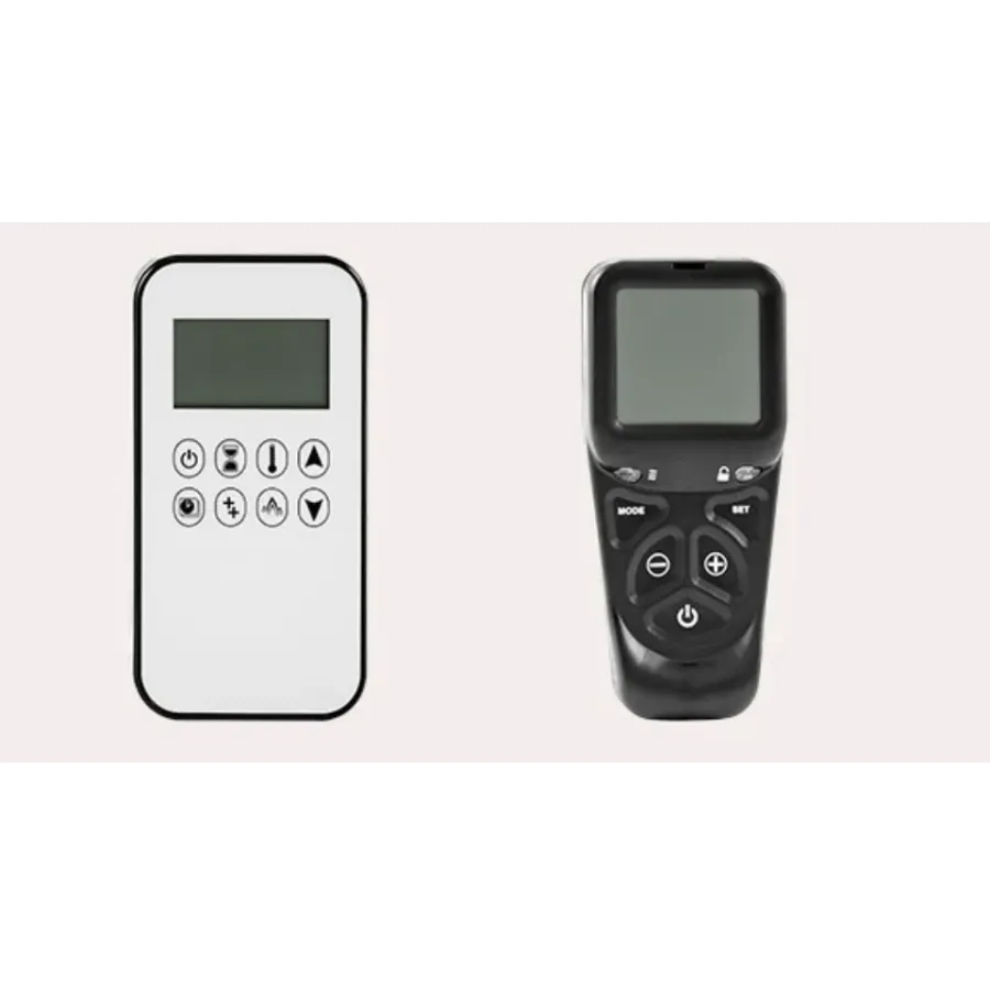 Ponadto, każdy z pilotów pełni funkcję termostatu, mierzy temperaturę w pomieszczeniu, a także ma wiele innych funkcji takich, jak: blokada rodzicielska, ustawianie czasu, minimalna i maksymalna wysokość ognia czy wyłącznik czasowy.