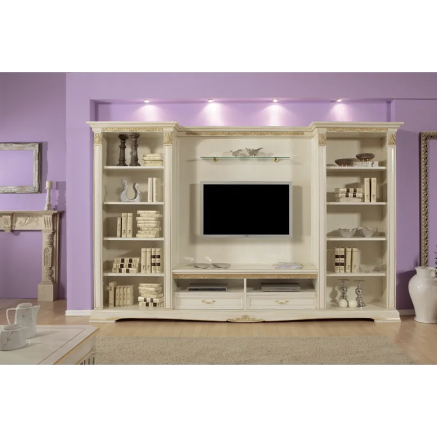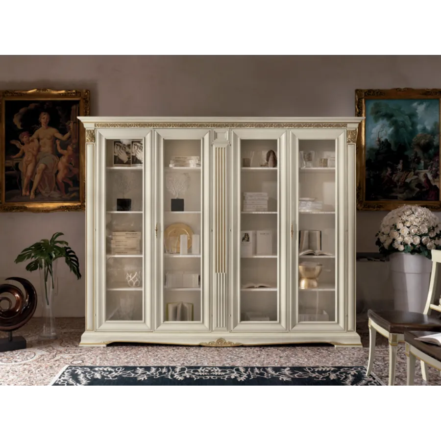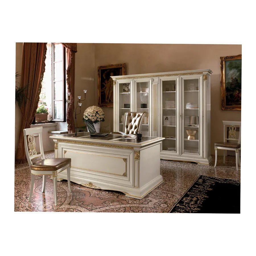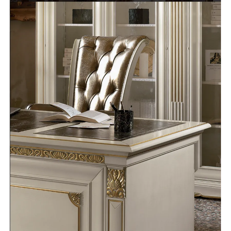 VIVALDI CREMA Włoskie Luksusowe biurko ze zdobieniami skórzany blat 186 x 91 x 77cm / 1740