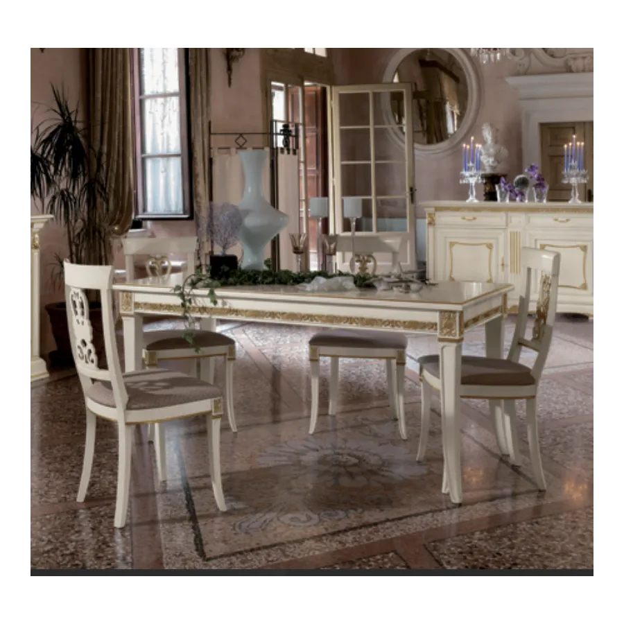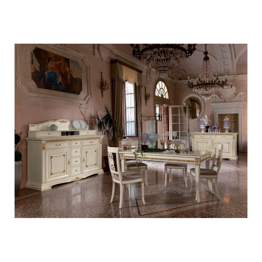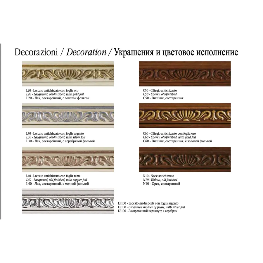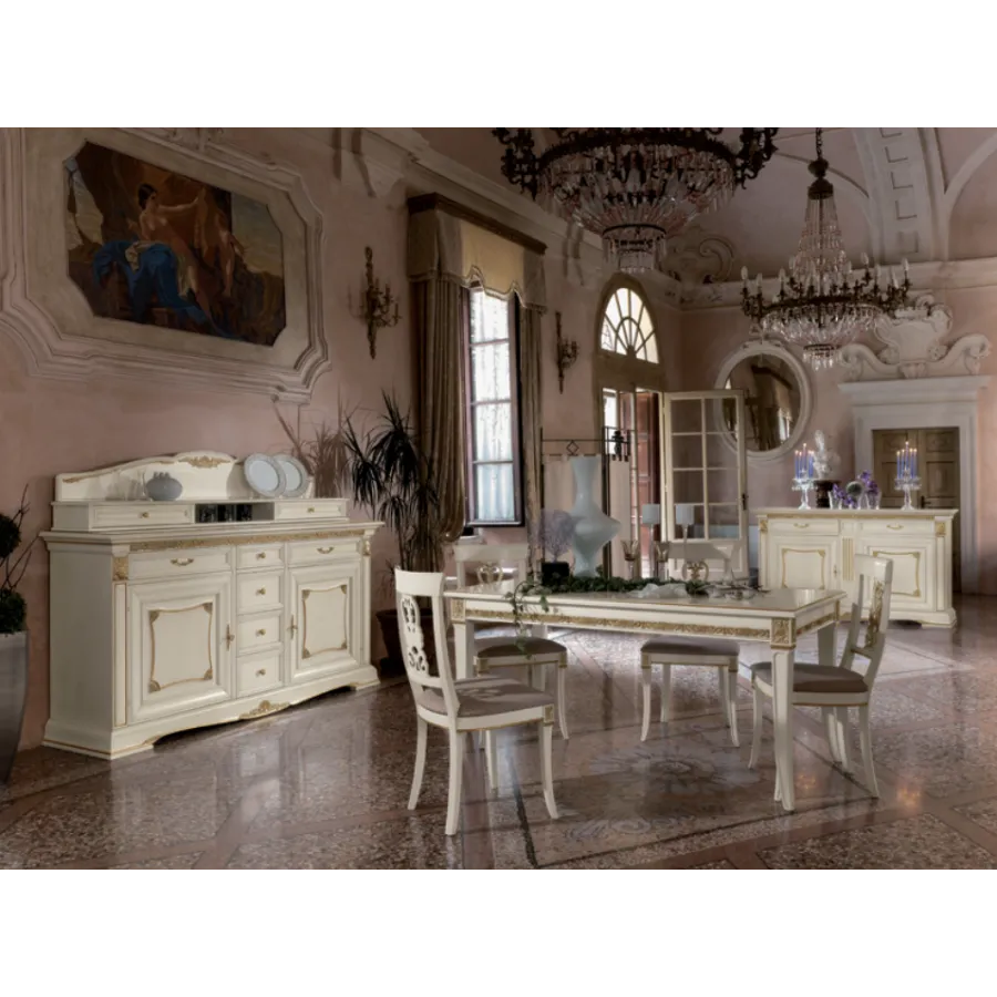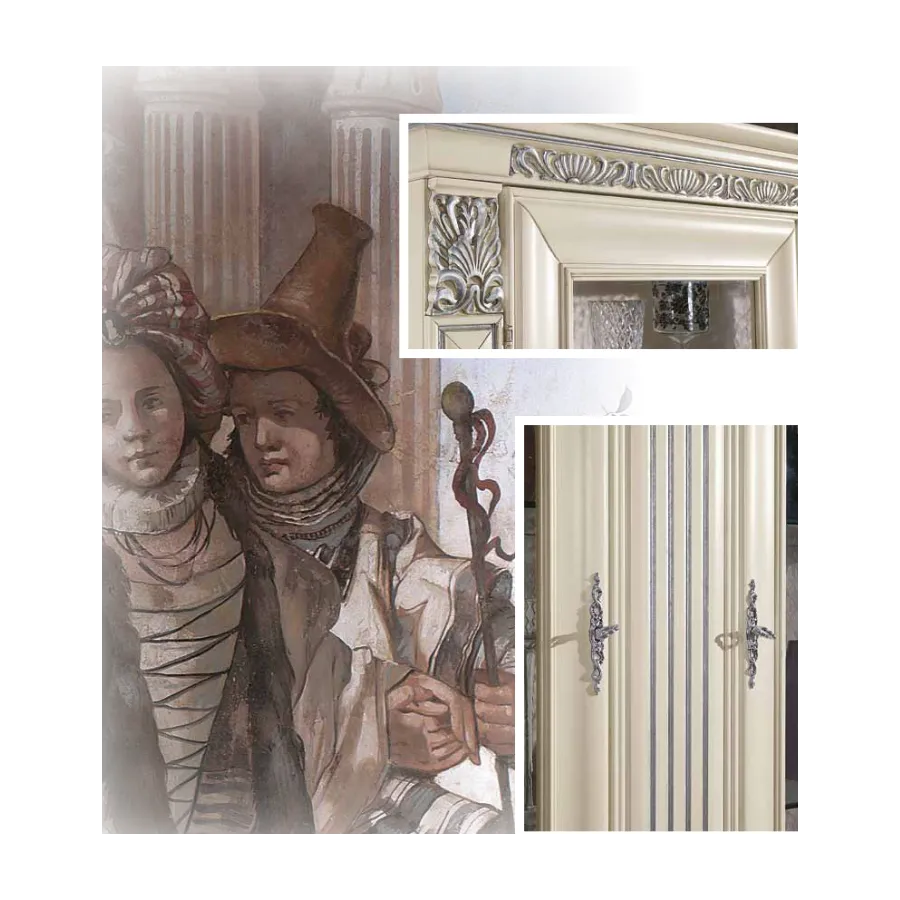 Wnętrze zaaranżowane meblami z tej kolekcji to jasna, harmonijna przestrzeń, w której dominuje mlecznobiała kolorystyka oraz złote liście subtelnie zdobiące rzeźbione dekoracje. Każdy detal, każda linia została zaprojektowana z największą starannością przez najlepszych włoskich architektów i projektantów, a możliwość wykonania mebli na zamówienie pozwala sprostać nawet najbardziej wyszukanym oczekiwaniom.