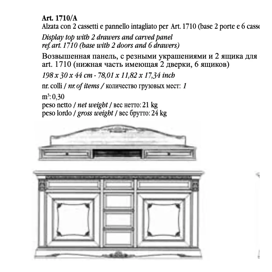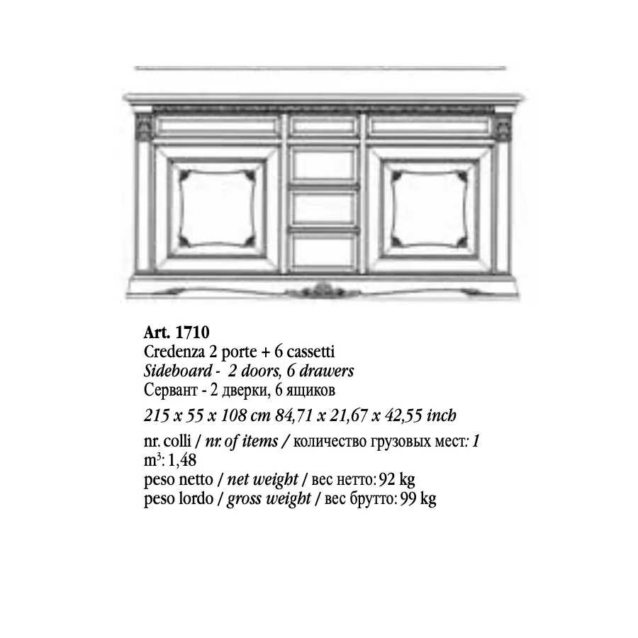 VIVALDI CREMA Włoska Komoda 2 drzwi 2 szuflady zdobienia 187 x 108 x 55cm / 1712