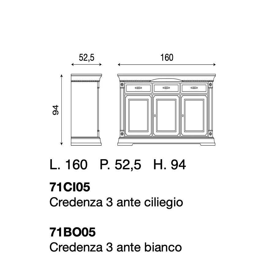 PALAZZO DUCALE ECRU Włoska komoda 3 drzwiowa 160 x 94 x 52.5cm / 71BO05