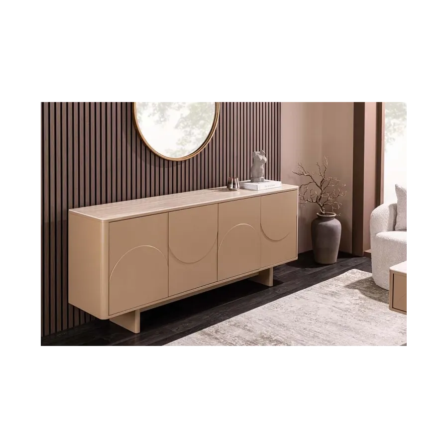 Komoda SAVOY to wyrafinowane połączenie estetyki naturalnego kamienia z nowoczesnym kunsztem wykonania, oferując elegancki i nieskrępowany wygląd każdej profesjonalnej przestrzeni. Dzięki eleganckiemu wykończeniu i praktycznemu wzornictwu, komoda SAVOY zapewnia uporządkowaną funkcjonalność otuloną subtelną elegancją.