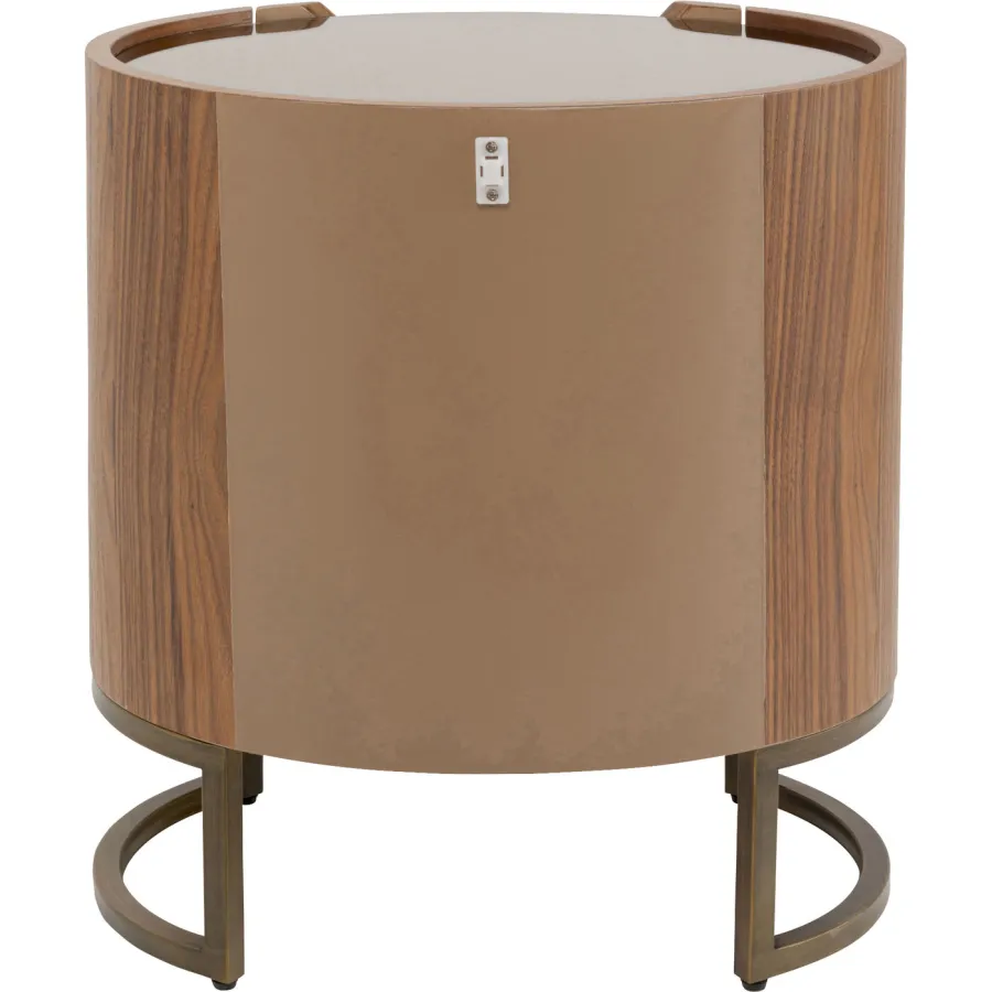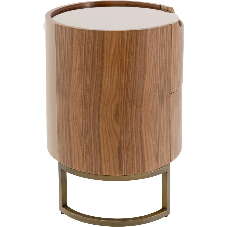 Korpus i fronty: Orzech, płyta pilśniowa średniej gęstości (MDF), lakierowana, Panel tylny: Płyta pilśniowa średniej gęstości (MDF), lakierowana, Płyta osłonowa: Szkło barwione, Stopa/podstawa: Stal nierdzewna lakierowana, Półka: 2 sztuki, Płyta pilśniowa średniej gęstości (MDF), lakierowana, Drzwi: 3 sztuki, Orzech, płyta pilśniowa średniej gęstości (MDF), lakierowana, Rama: Stal nierdzewna