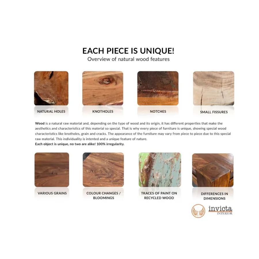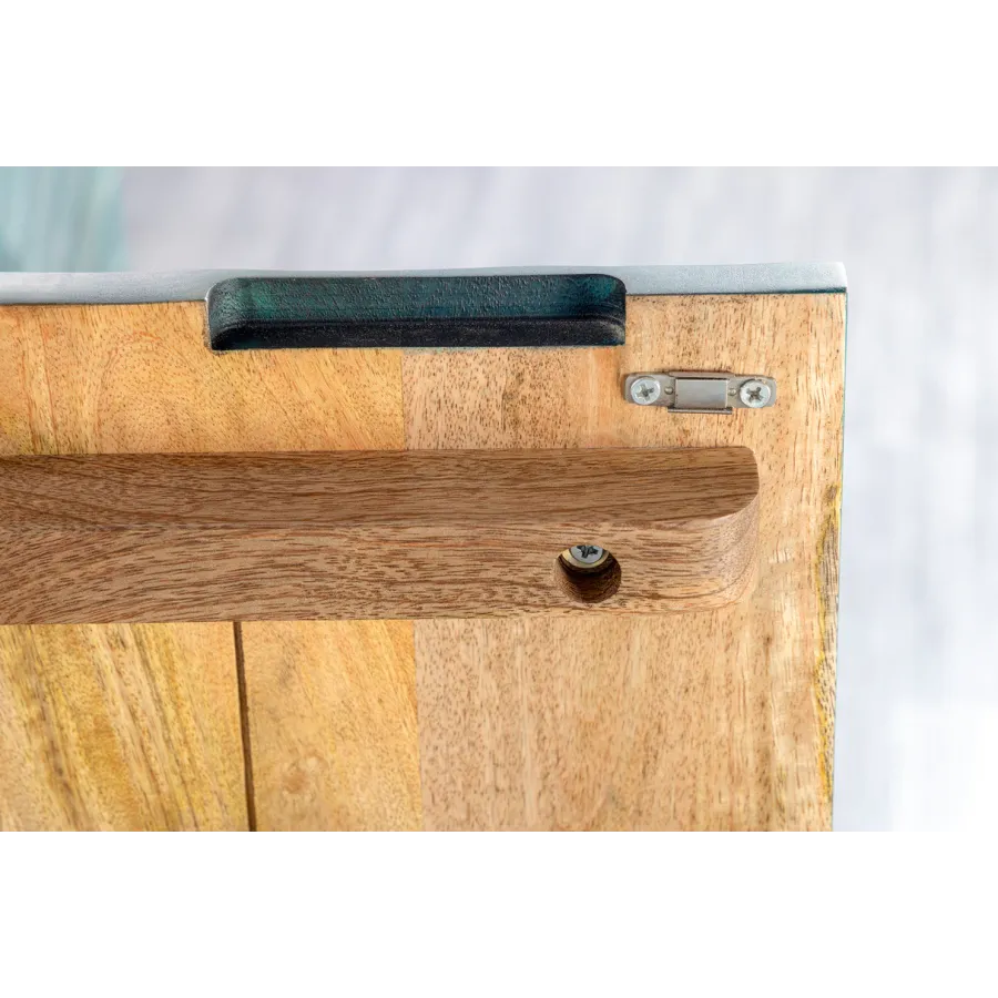 Ale nie tylko wygląd komody inspiruje od pierwszej chwili. Wnętrze też jest obiecujące. Za misternie zaprojektowanymi drzwiami znajdują się cztery duże przegrody o wyglądzie naturalnego drewna mango. Dużo miejsca do przechowywania naczyń, książek lub szklanek poza zasięgiem wzroku.