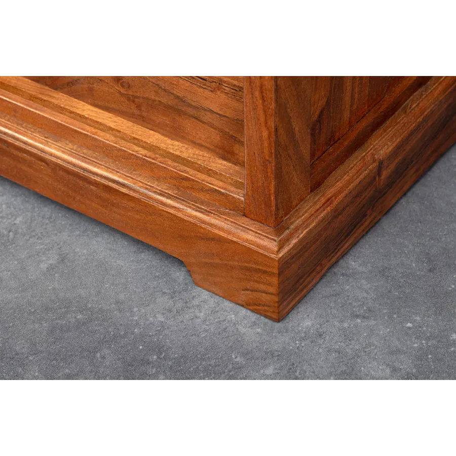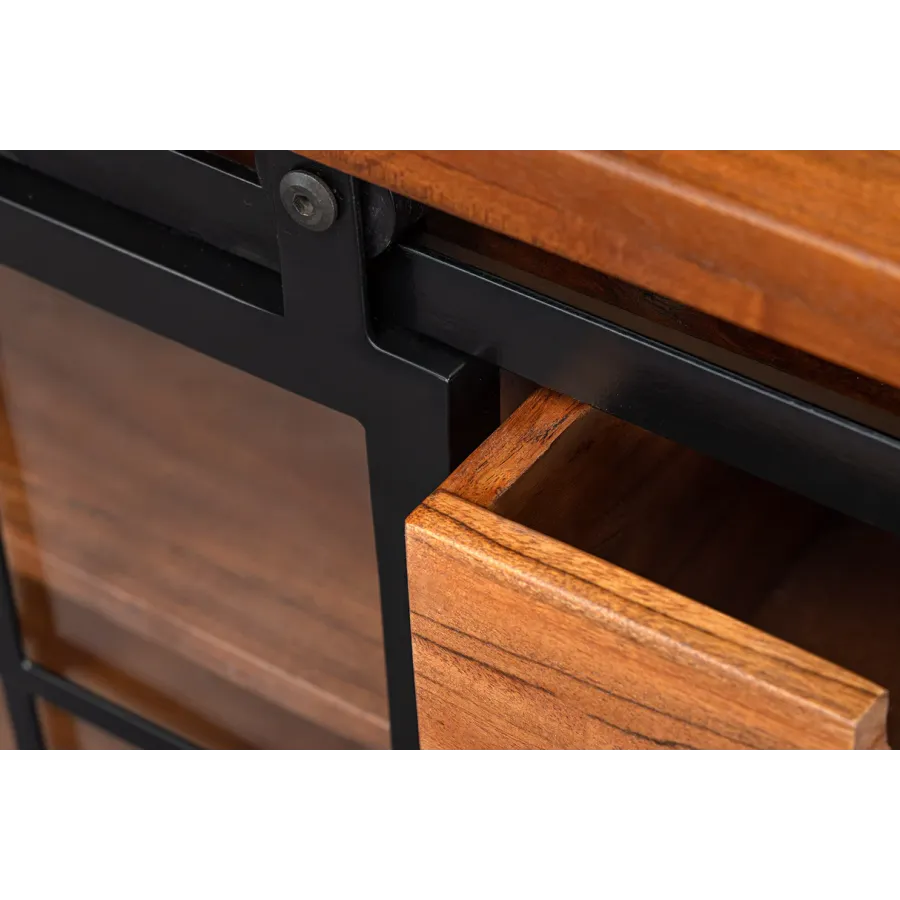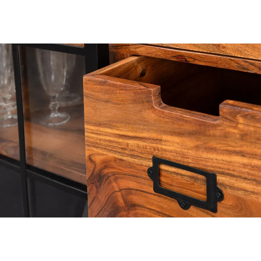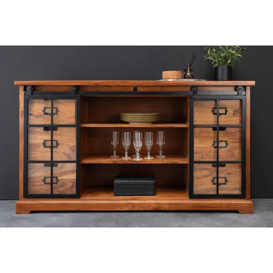 Komoda HERITAGE oferuje dużo miejsca do przechowywania w Twoim salonie z dwiema szufladami i trzema przestronnymi przegródkami. Tutaj rustykalne piękno naturalnego litego drewna łączy się z nowoczesnymi elementami. Korpus i duże szuflady tablicy TV utrzymane są w klasycznym stylu country house, a industrialne wzornictwo dopełniają szyby z systemem zawieszania i ozdobnymi kratami okiennymi. Umiejętne połączenie stylów zapewni niepowtarzalny akcent w Twoim domu!