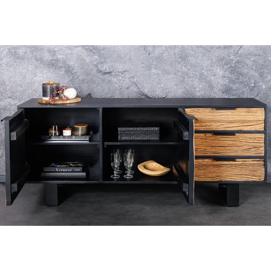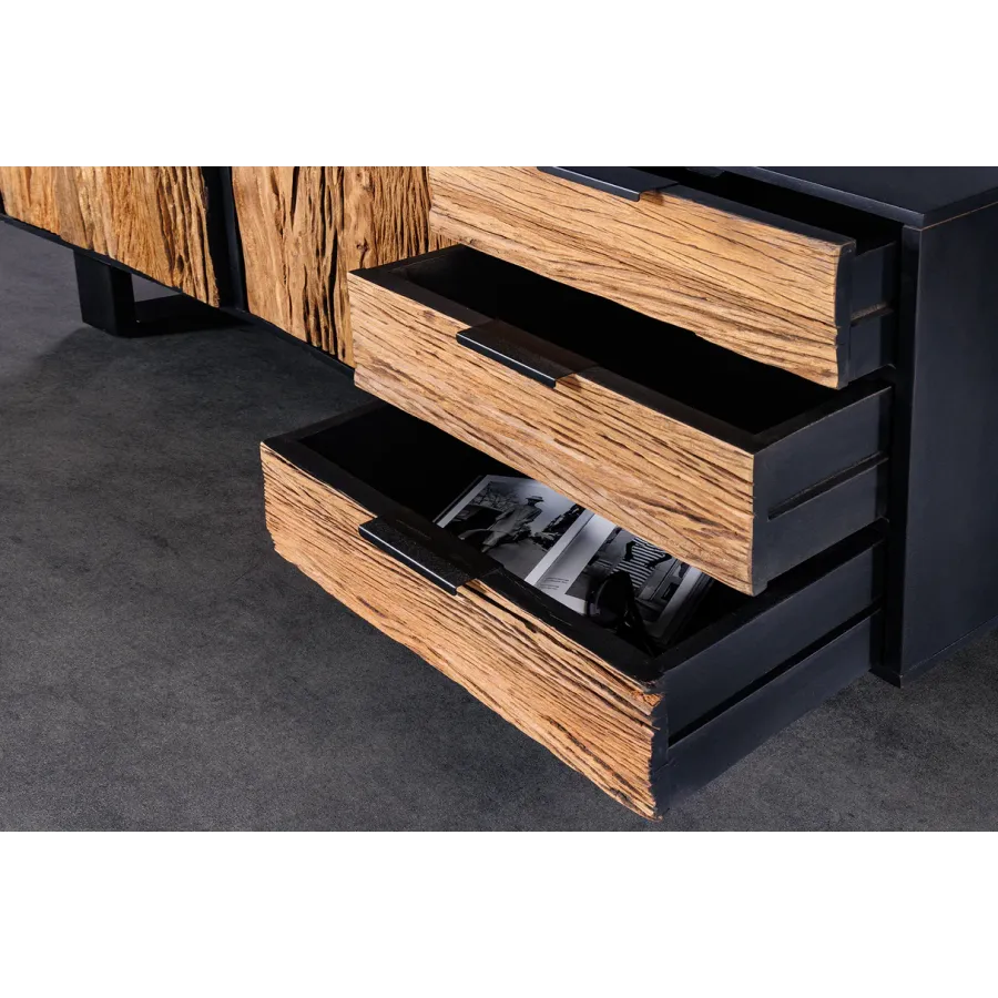 Wykonane z pomostów, łodzi i starych domów rybackich, meble te opowiadają nam swoją historię. Odkryj meble, które nie są gotowe do użycia i emanują wyjątkowym stylem. Niepowtarzalne kolory i bruzdy drewna tekowego w połączeniu ze stalą nierdzewną sprawiają, że ten mebel jest wyjątkowy. Kredens o nowoczesnym designie z modnej mieszanki materiałów Solidny kredens BARRACUDA to udane połączenie elementów naturalnych i nowoczesnych. Rustykalna powierzchnia składa się ze starych drewnianych desek i zachwyca swoim naturalnym wzornictwem. Pęknięcia i bruzdy stworzone przez naturę zostały celowo przetworzone i pozostawione. To sprawia, że ​​każdy kredens jest wyjątkowy! Kredens wykonany z drewna tekowego spoczywa na prostej ramie ze stali nierdzewnej. Daje to szafce pewną i stabilną podstawę oraz łączy w sobie nowoczesny design z naturalnymi elementami. Szlachetny, funkcjonalny i oszałamiający wygląd, ten kredens stanie się centrum Twojego domu. Uwaga: ponieważ jest to produkt naturalny, każdy egzemplarz jest absolutnie wyjątkowy. Nierówności, charyzmatyczne dziury po sękach, pęknięcia, a nawet różnice wymiarowe są możliwe i tworzą oryginalność oraz tworzą urok litego drewna. Istniejące pęknięcia są łączone i stabilizowane za pomocą łączników wykonanych z tego samego drewna podczas procesu produkcyjnego. Dlatego mogą wystąpić odchylenia kolorów. Żaden z tych powodów nie stanowi podstawy do reklamacji.