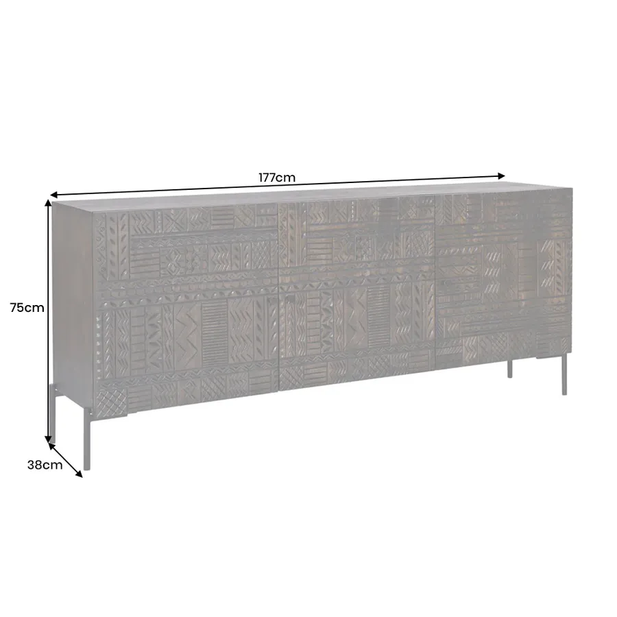 Dzięki solidnej, stabilnej konstrukcji komoda oferuje nie tylko najwyższą jakość i trwałość, ale także mnóstwo miejsca do przechowywania wszystkiego, co chcesz stylowo przechowywać. Dla maksymalnego bezpieczeństwa i stabilności zaleca się montaż na ścianie – to niewielki nakład pracy, a mebel będzie cieszył Cię przez długi czas. Niezależnie od tego, czy znajduje się w salonie, jadalni czy przedpokoju: komoda TRIBAL łączy w sobie kunszt i funkcjonalność.
