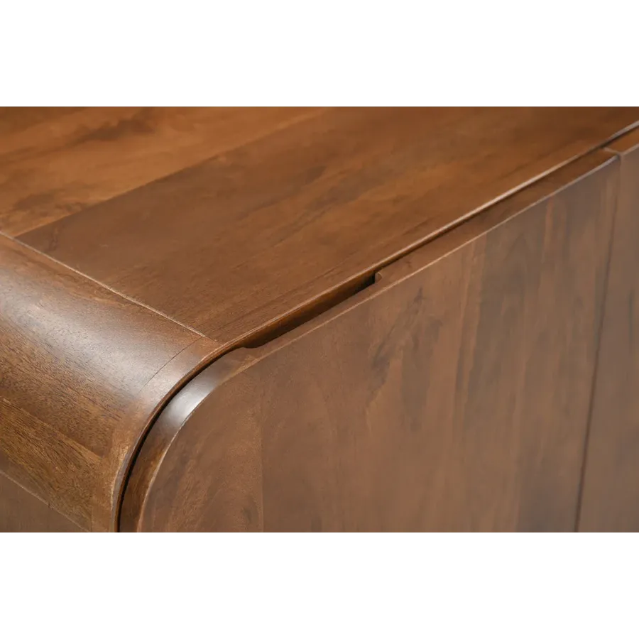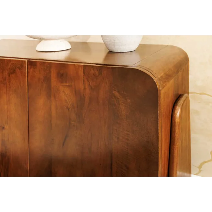Komoda BRASIL wniesie do Twojego domu powiew południowoamerykańskiej naturalności. Wykonany z litego, lakierowanego drewna mango, mebel zachwyca ciepłym, brązowym kolorem i wyrazistym usłojeniem. Zaokrąglony kształt tworzy miękką sylwetkę i wprowadza spokój i harmonię do wnętrza.