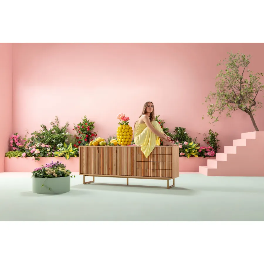 Rama: stal nierdzewna lakierowana, Korpus: płyta pilśniowa średniej gęstości (MDF) lakierowana, Front: sklejka jesionowa lakierowana, Półka: płyta pilśniowa średniej gęstości (MDF) lakierowana, Uchwyt: lakierowana stal nierdzewna, Przód: ręcznie wykonany, Półka: Regulowana wysokość