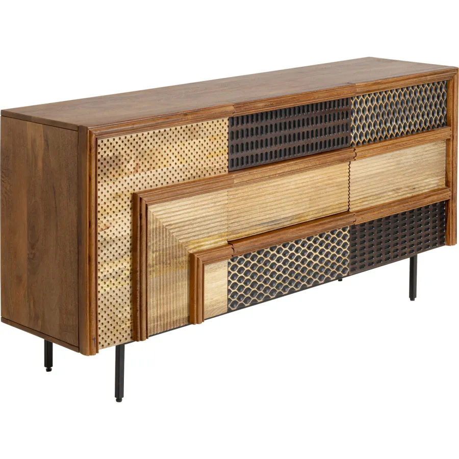 Materiał wykonania: Korpus i fronty: Płyta pilśniowa średniej gęstości (MDF) lakierowana, Mango lite drewno lakierowane, Panel tylny: Płyta pilśniowa średniej gęstości (MDF) lakierowana, Stopka/podstawa: Stal malowana proszkowo, Półka: 2 Stück Płyta pilśniowa średniej gęstości (MDF) lakierowana, Rama szuflady: 3 Stück Płyta pilśniowa średniej gęstości (MDF) lakierowana, Drzwi: 2 Stück Płyta pilśniowa średniej gęstości (MDF) lakierowana, Drzwi: 2 Stück Płyta pilśniowa średniej gęstości (MDF) Lakierowane
